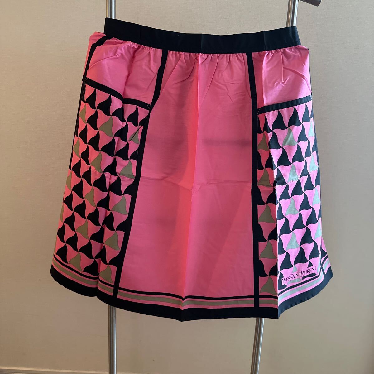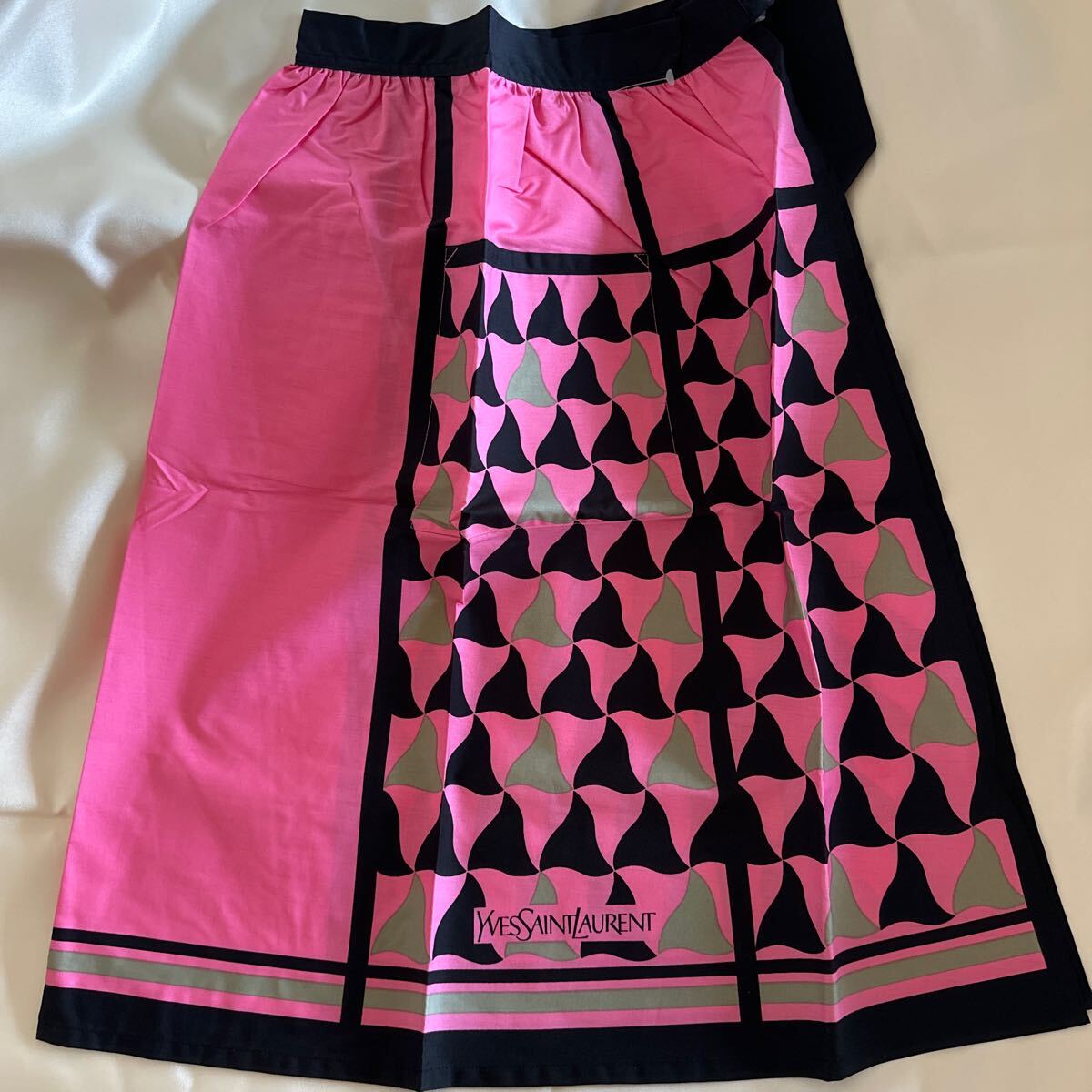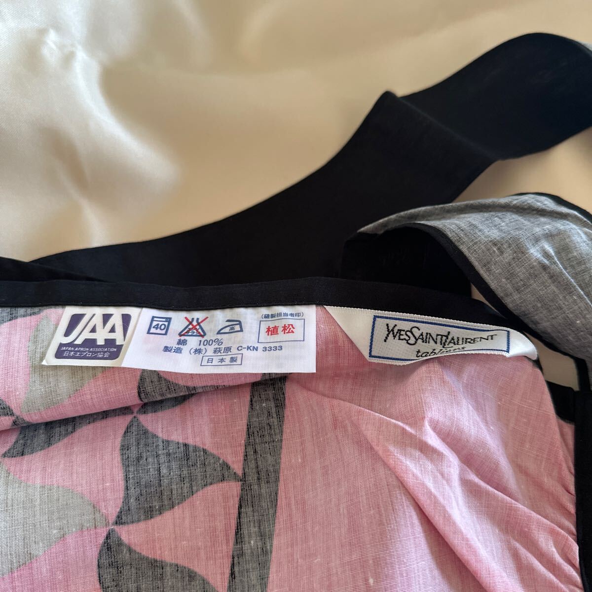 ピンクと黒のモダンなデザインのエプロンです。