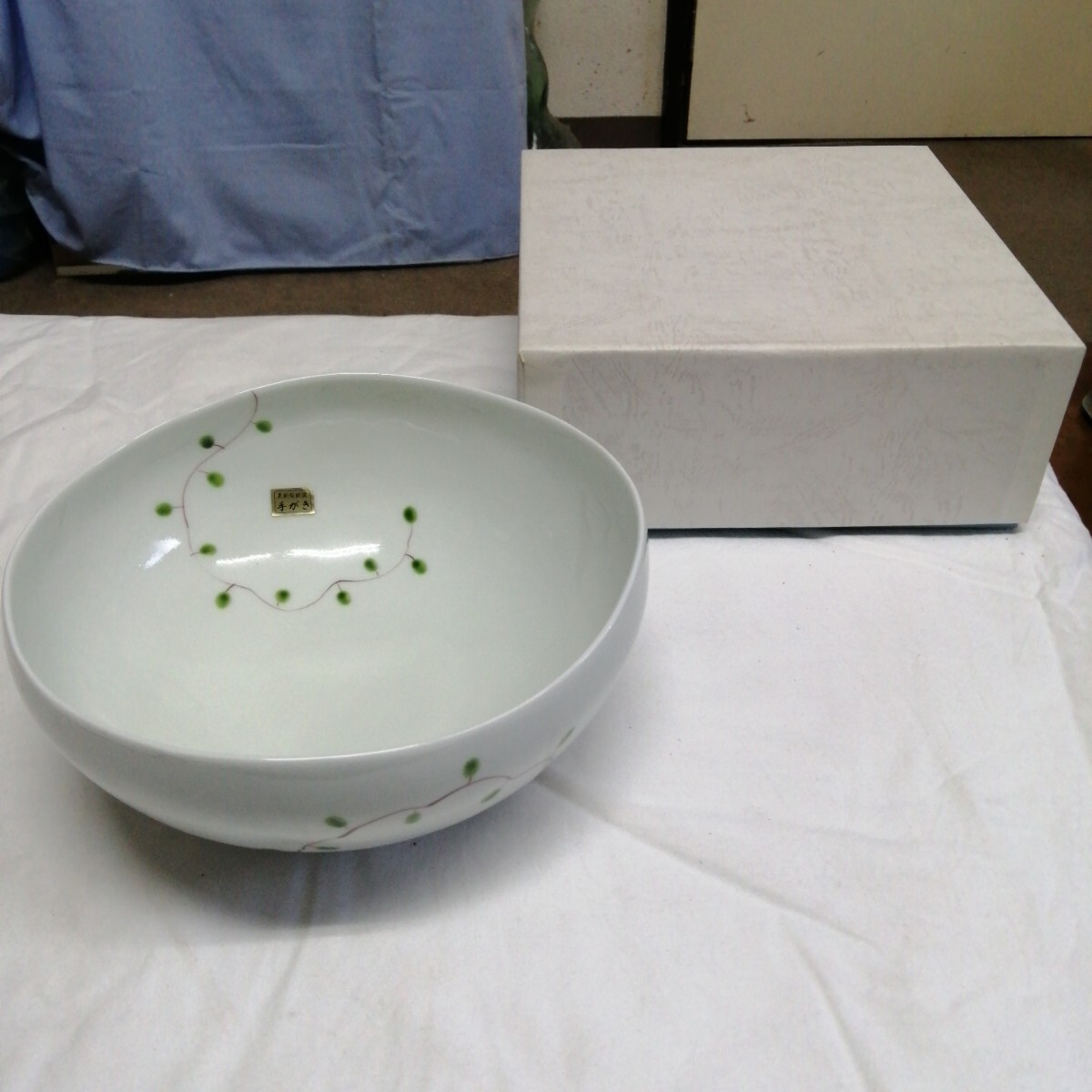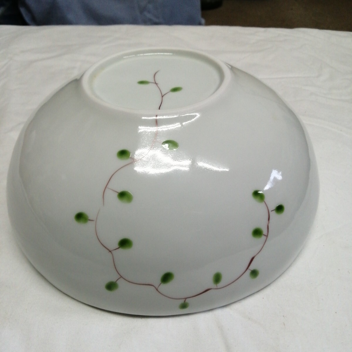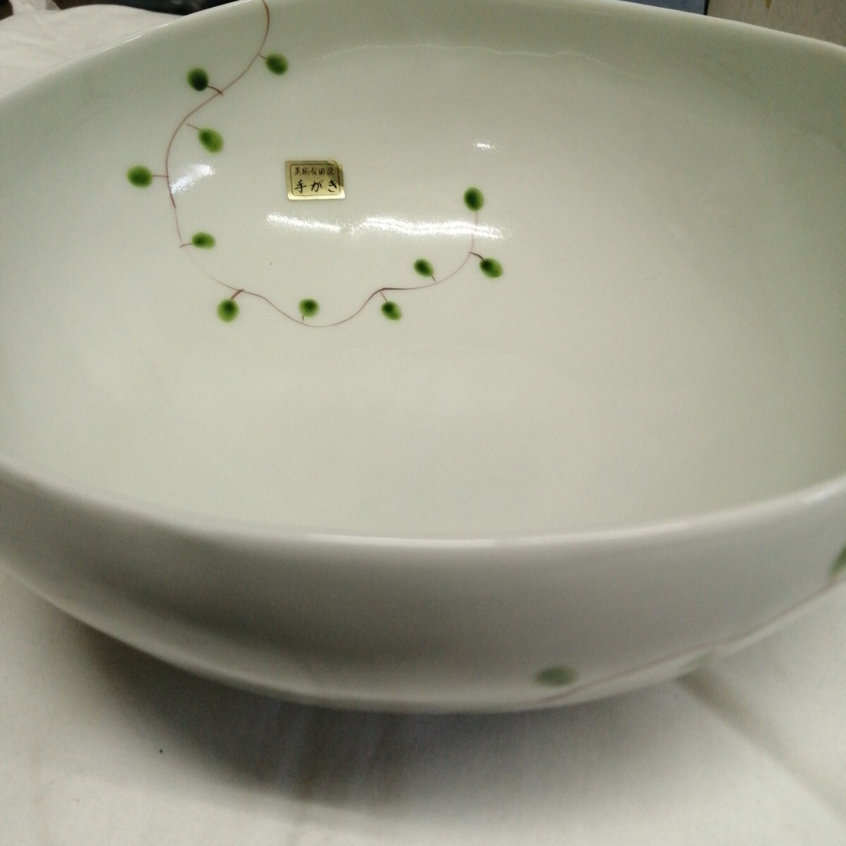 箱入未使用品 有田焼 手がき アンティーク サラダボウル 豆 種 ツル 鉢 深鉢 (約直径21×高9.4cm)
