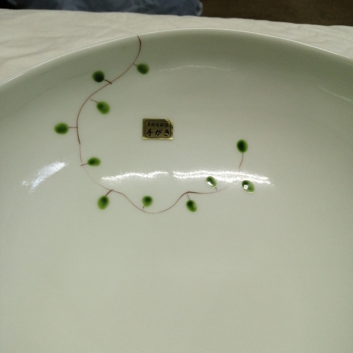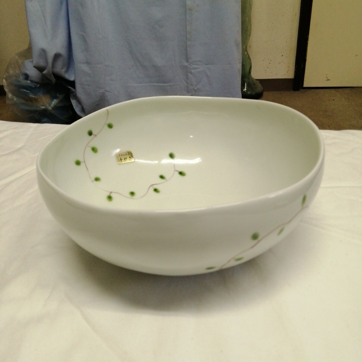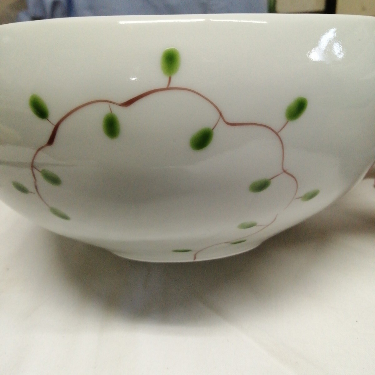 箱入未使用品 有田焼 手がき アンティーク サラダボウル 豆 種 ツル 鉢 深鉢 (約直径21×高9.4cm)