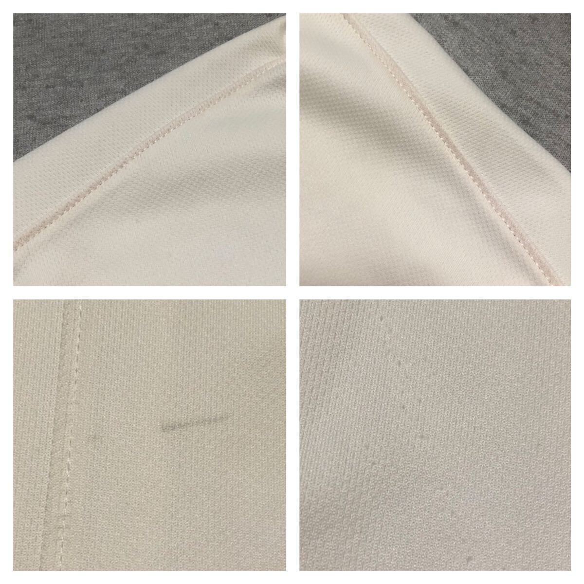 少し毛羽立ち、薄い汚れがあります。首周り、袖、腹部、背中に薄い汚れがあります。