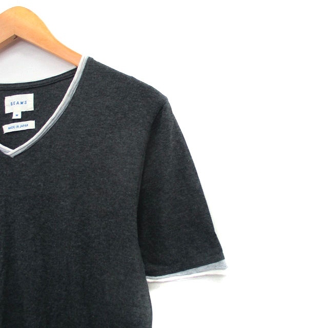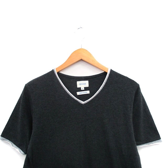 ビームス BEAMS カットソー Tシャツ 半袖 Vネック コットン シンプル M チャコールグレー /KT16 レディース