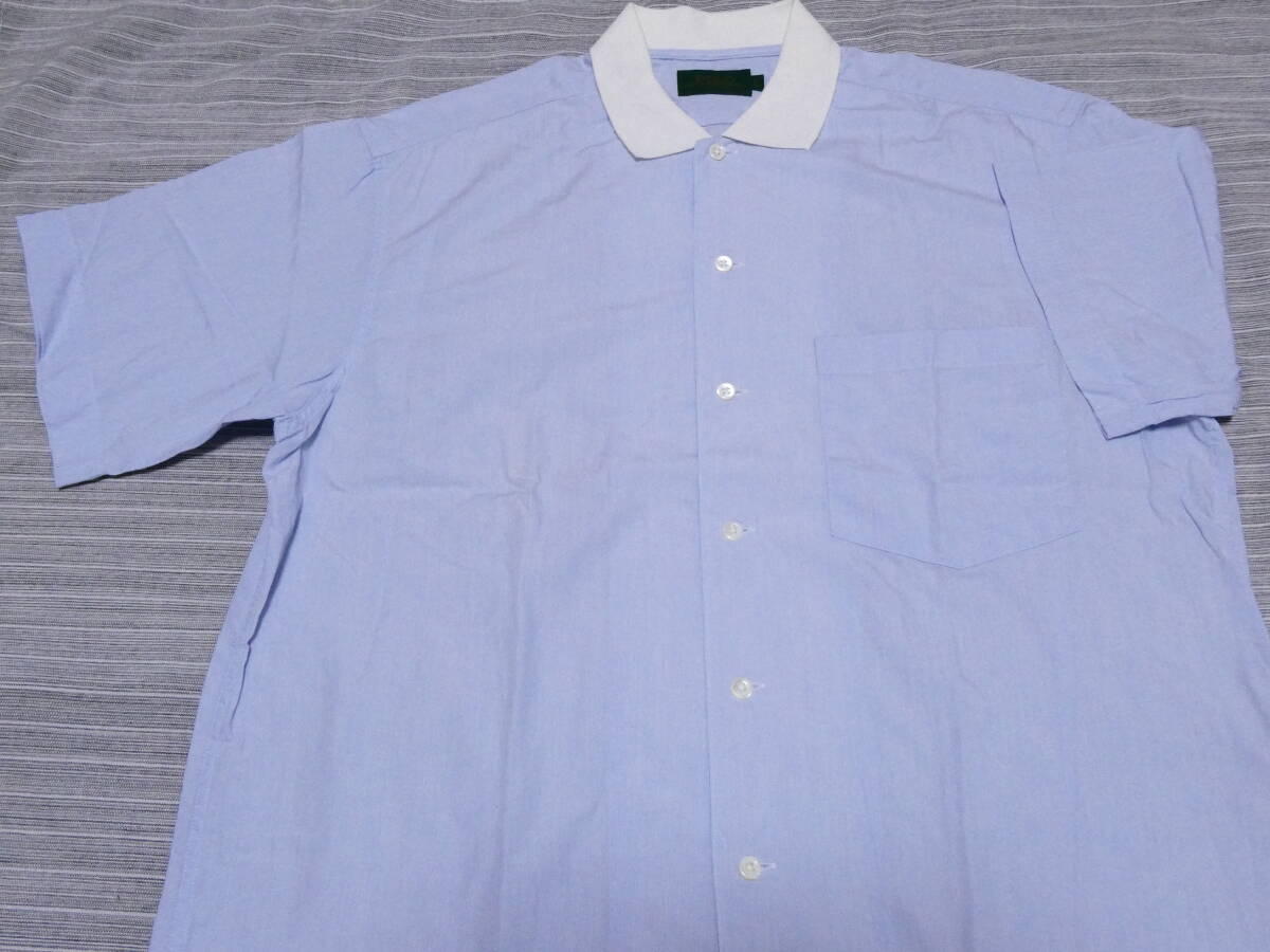 ポロ襟の付いたごく薄い平織生地を使用した半袖シャツです。この取り合わせのシャツは珍しいと思います。日本のLサイズですがややゆったり目なので、風の通りが良くとても涼しく着られます。下記実寸を参考にご検討ください。