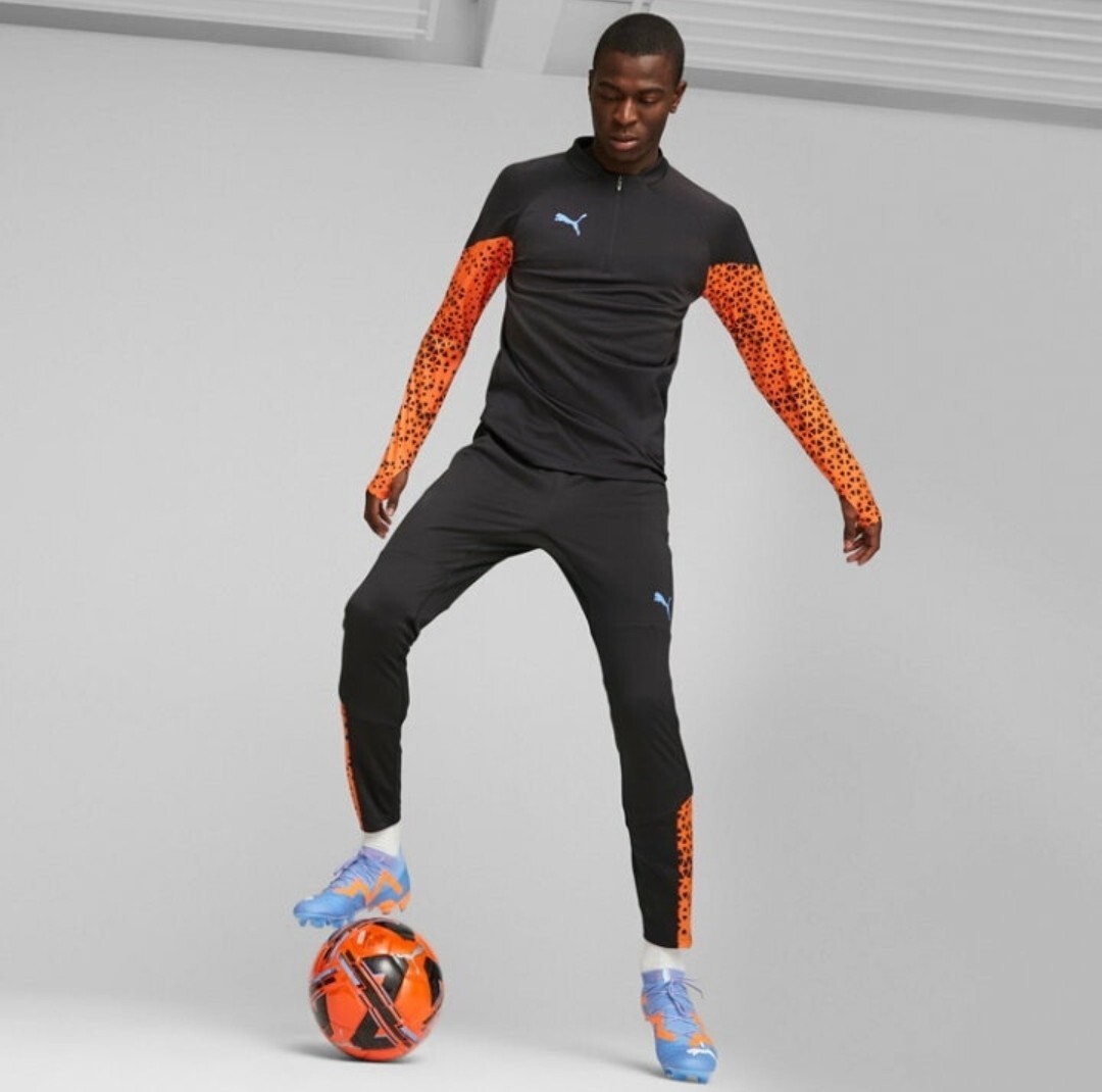 dryCELLを搭載し吸水速乾性が高いため、運動中も快適な着心地が持続します。シンプルなデザインながら、右胸のプーマキャットロゴやコントラストパネル、袖のグラフィックプリントなどアクセントを加えました。クォータジップで着脱も簡単にできるのもうれしいポイントです。