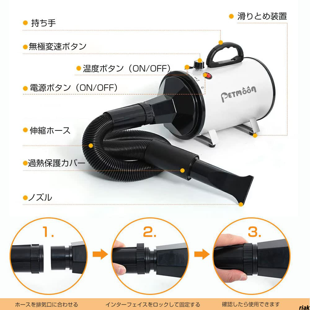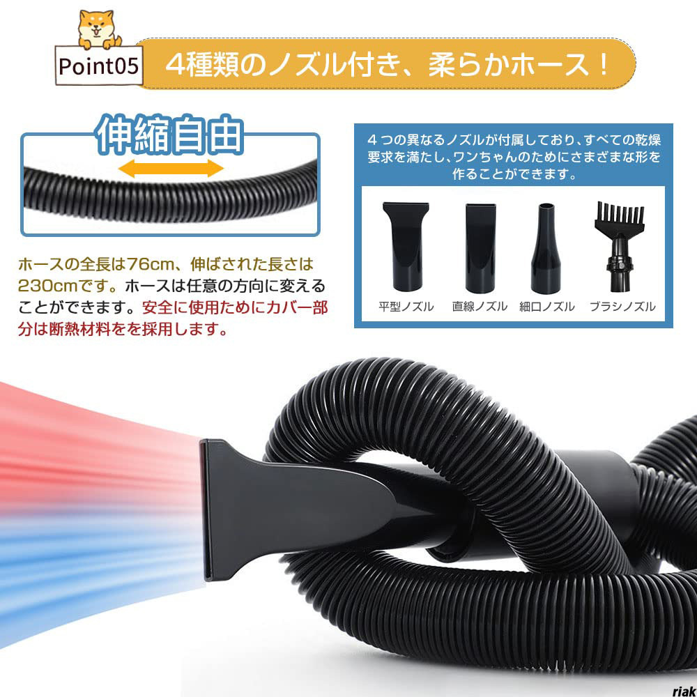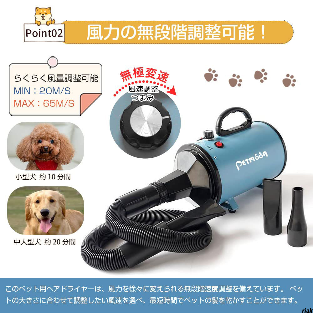 【騒音低減設計により、ペットがリラックスして乾燥できる】  ペットドライヤー ペットドライヤー ブロワー 無段階速度制御 送風機