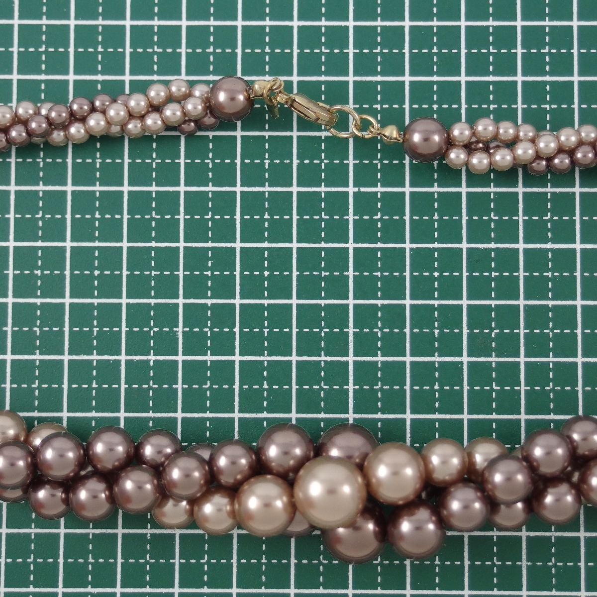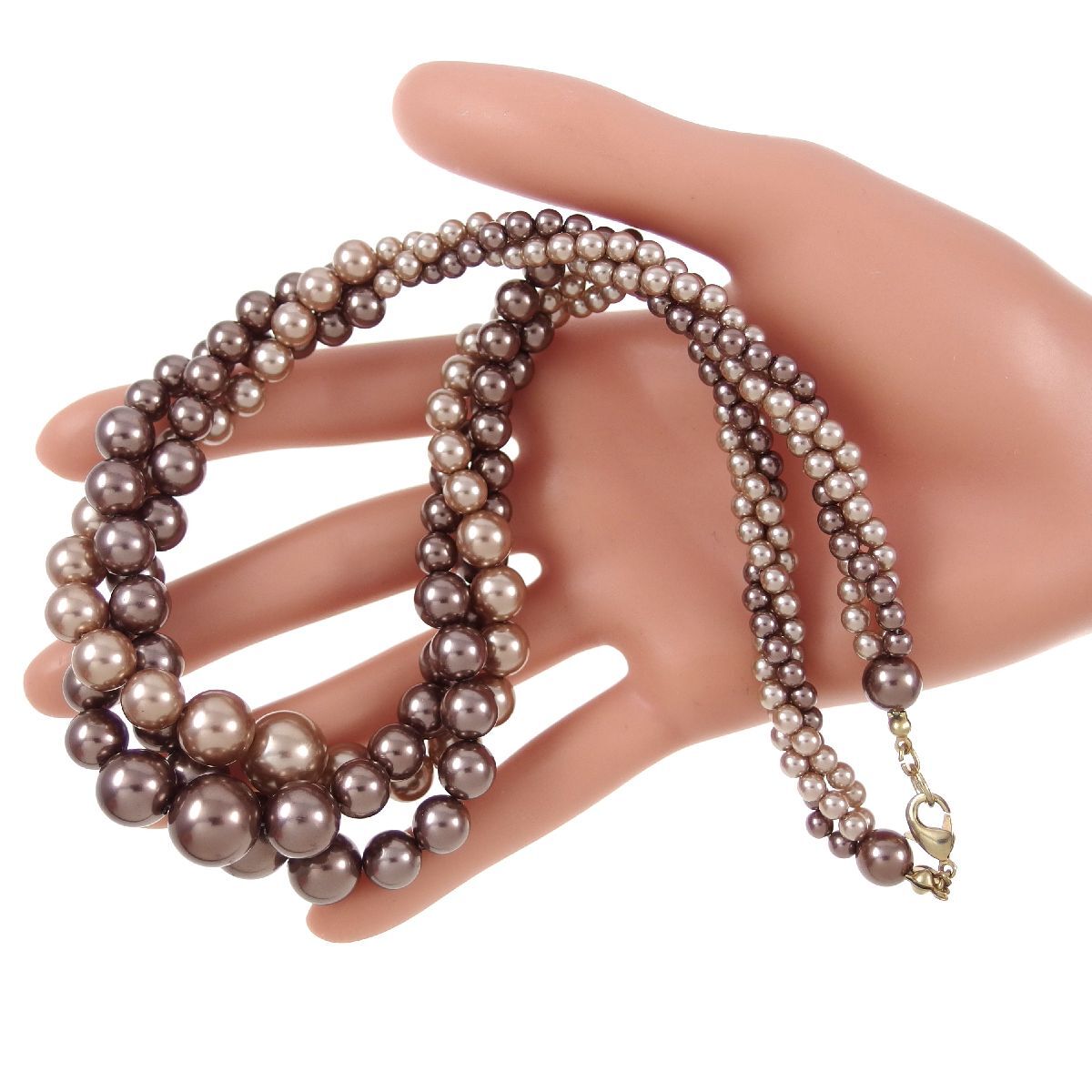 A10589◆【RMN】◆ ブラウン系フェイクパール 3連スクリューデザイン ネックレス