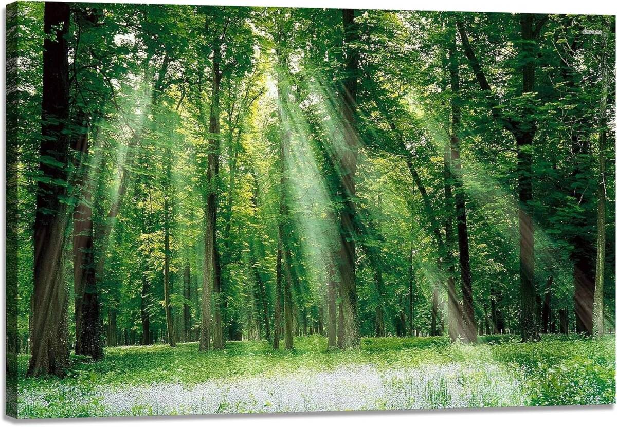 絵画 壁画の風景画 キャンバスピクチャーホームデコレーションポスター 40x60cm 自然 森 緑 太陽 枝下 林間 インテリア おしゃれ