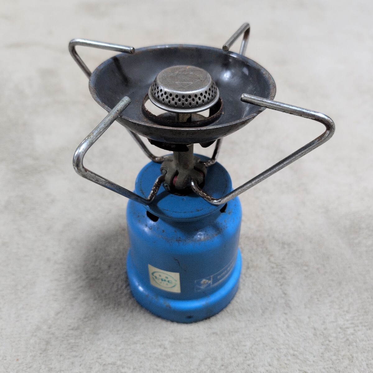 ジャンク品/長期保管品/中古/キャンピングガス/シングルバーナー/スーパーブルー/B型/コンロ/H約200mm/Φ100mm/質量520g