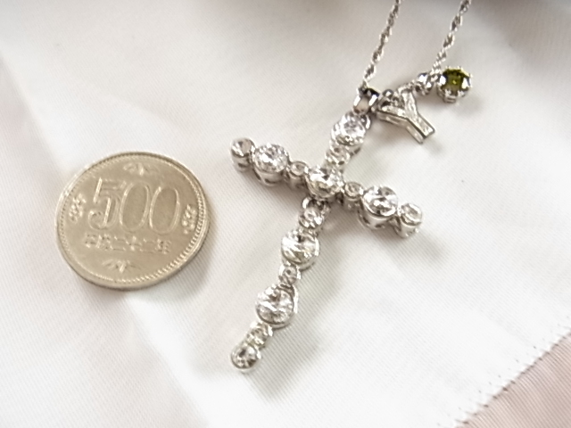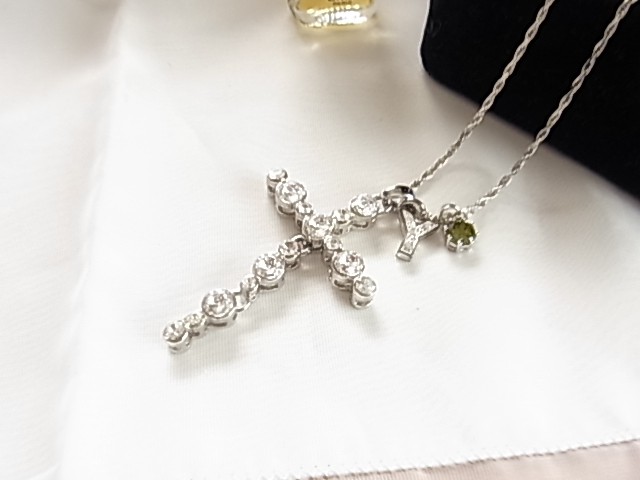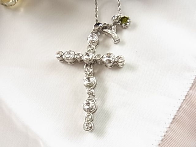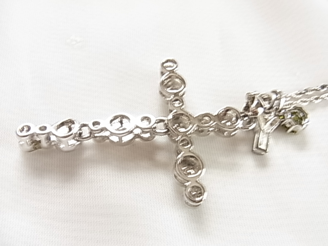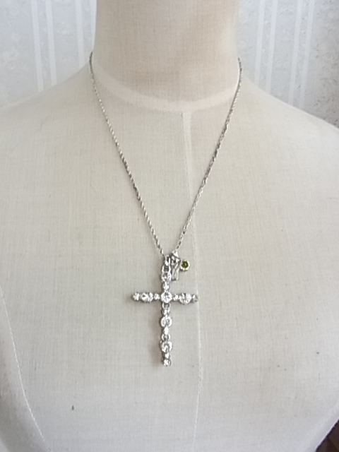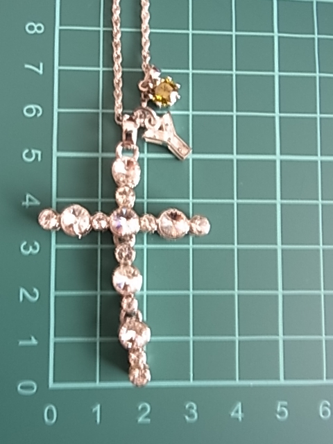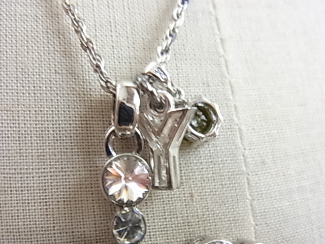 ビンテージ/ヴィンテージ 輝くラインストーンの十字架 クロスデザインのトップにYのアルファベットチャーム 素敵なネックレス▲