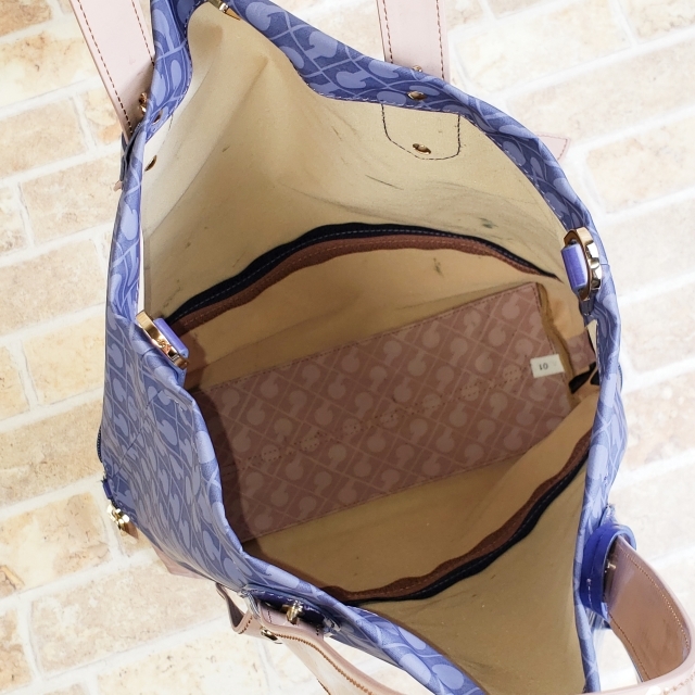 商品説明 | ・バイカラーデザインが素敵な 縦長 2WAY トートバッグ / ショルダーバッグ です。 A4サイズが縦にしっかりいれていただけます。 ・カラー くすみピンク系 ブルー(画像参照) ・素材 ポリエステル・ポリウレタンコーティング エナメルレザー(本革) ・製造国 イタリア製 ・付属品 ブランドタグ 保存袋(毛羽立ちがあります) ・サイズ 縦幅 約34.5cm(中央部) 横幅 約25.5cm(底面付近最大幅 マチ 約10.0cm(底面最大幅) ハンドル高さ 約19.0~24.0cm ショルダー長さ 約98.0~126.0cm(7穴) ・商品コンディション ロゴチャームのロゴパーツ部分にベタつきがあります。(本体につかないようビニール袋をつけたままになります) 内装全体所々に黒っぽいシミ汚れが多数あります。(画像参照) ショルダーベルトの表面に所々に細かな圧迫痕があります。 その他使用感はありますが、まだまだご愛用いただけるコンディションです。(画像参照) ※個人保管商品ですので、店舗コンディションをお求めの方はご入札をお控えください。ご理解の上ご入札お願いいたします。 |