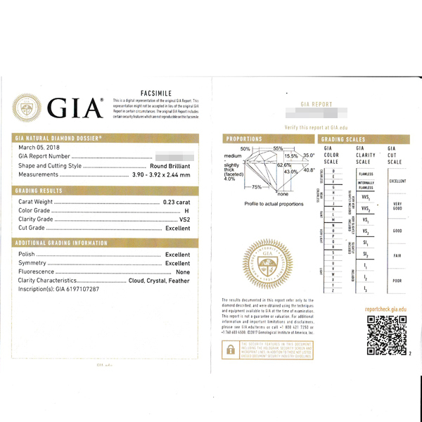 仕様 | ダイヤモンド0.23ct H-VS2-3EX |