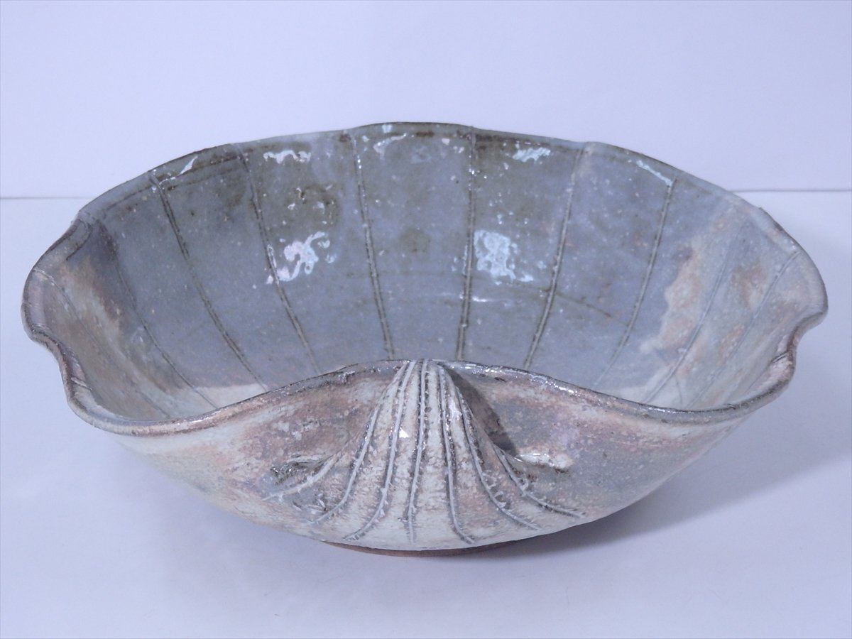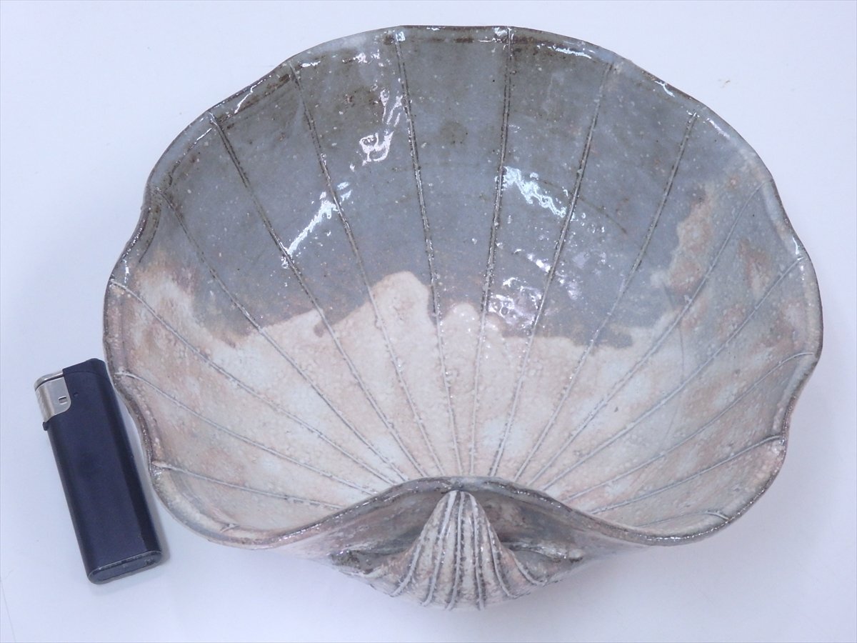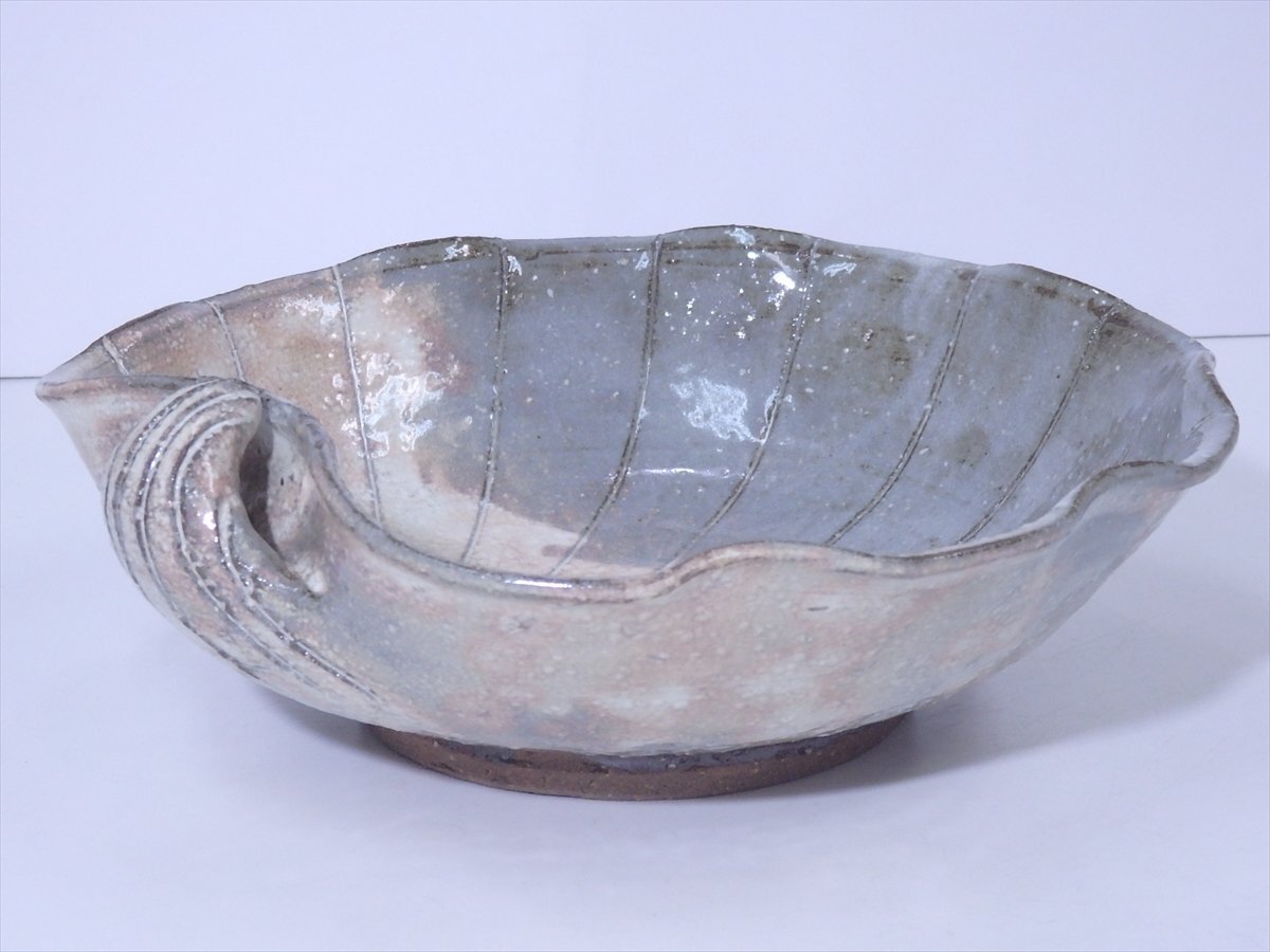 【管理番号5-0409094-8 スタッフコメント:iy】  ☆くるんと丸まった大きな葉の形です。ピンク、グレー、乳白色の色づかいも味わいです。割れや欠けはなく状態の良いお品です。共箱入り、栞付き。