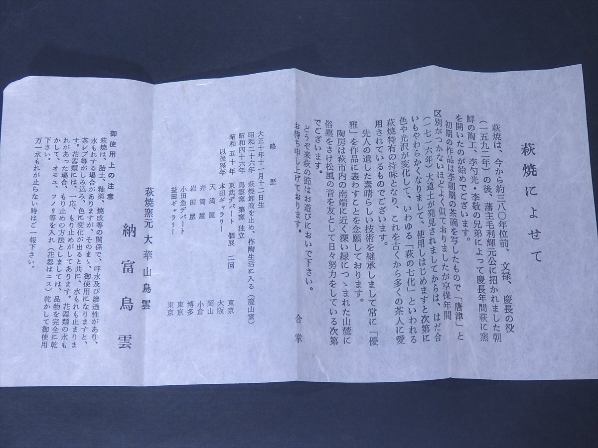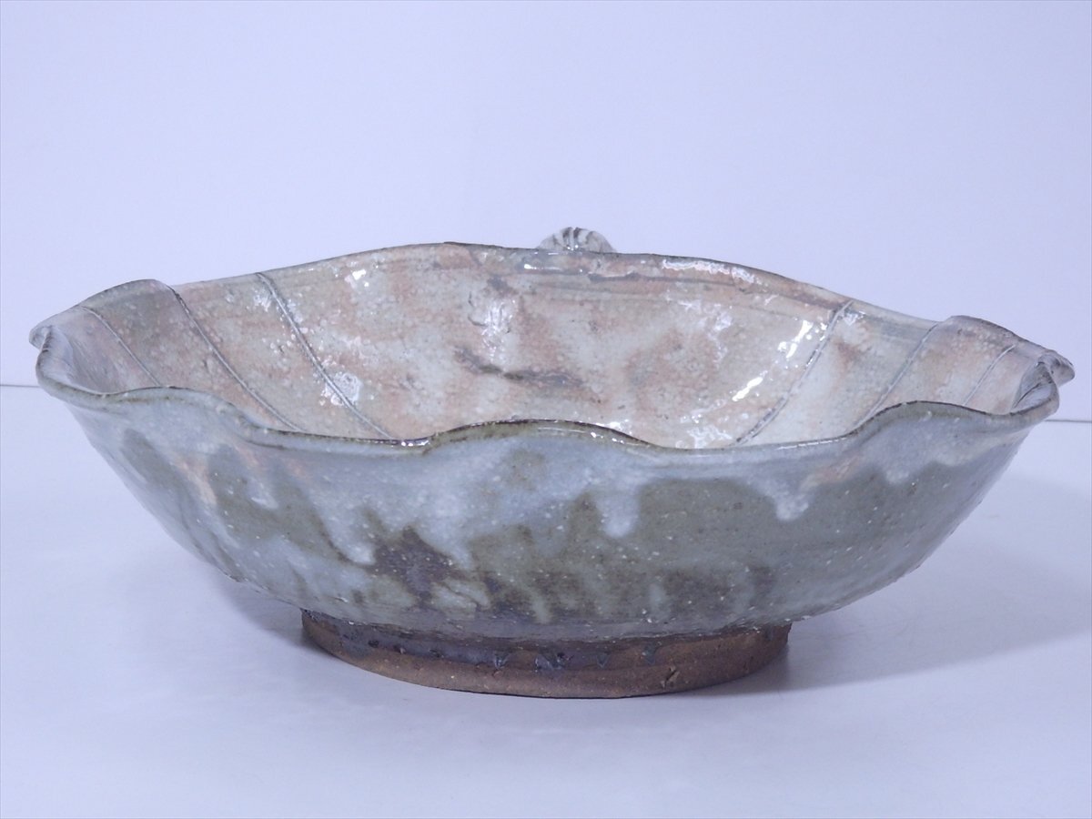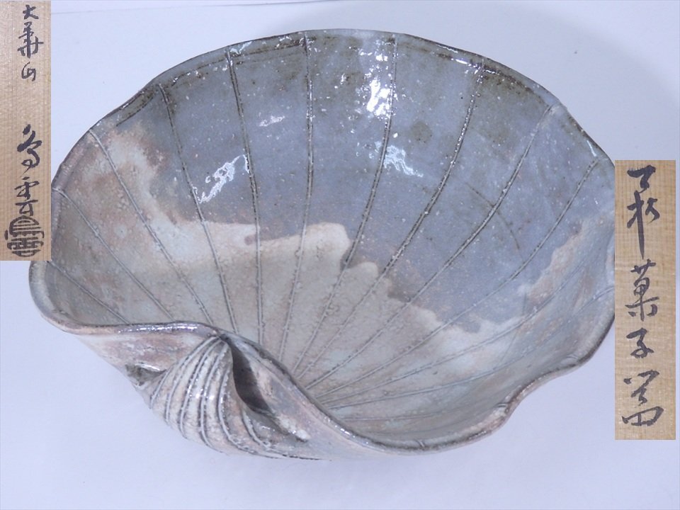 ★状態良好!萩焼窯元 大華山鳥雲窯 納富鳥雲【萩菓子器 共箱】直径24cm 高さ7.3cm 茶道具 茶器