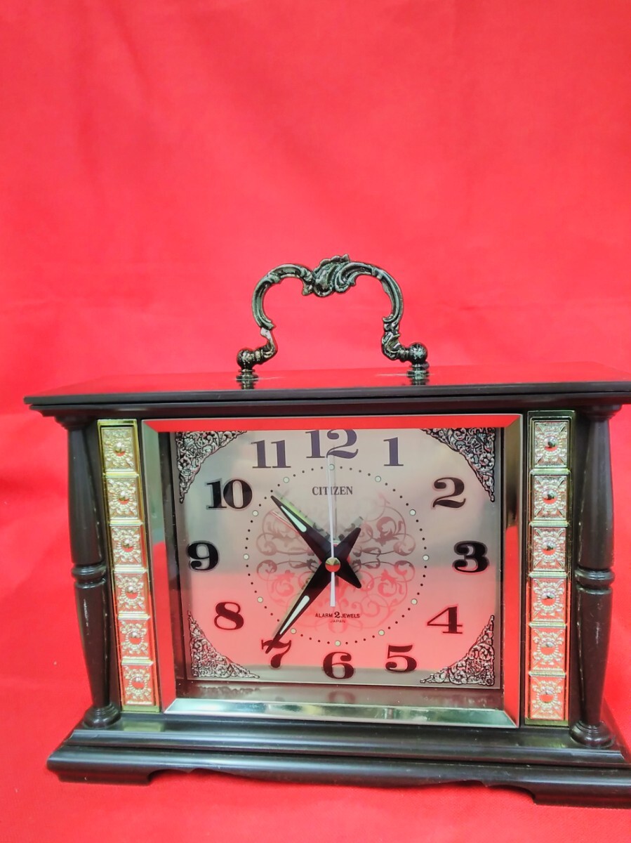 昭和レトロ CITIZEN シチズン 目覚まし時計 置時計 アナログ ゼンマイ式 取っ手付き 四角形 中古品 箱入り
