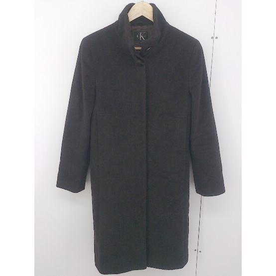 ■ Calvin Klein カルバンクライン アンゴラ混 長袖 ロング コート サイズ4 ブラウン レディース