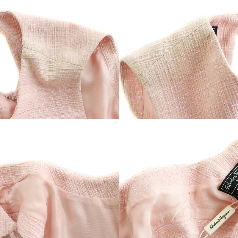 サルヴァトーレフェラガモ Salvatore Ferragamo ノースリーブ ワンピース ドレス タイトスカート ギャザー 絹 シルク ひざ丈 42 M ■PN