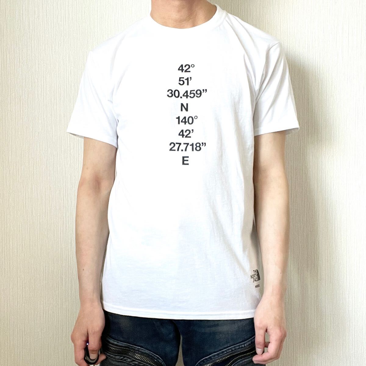 こちらは北海道ニセコのTシャツで、店舗の緯度経度がプリントされています。
