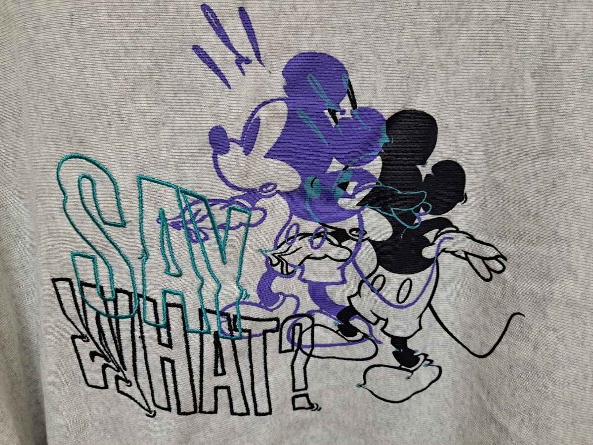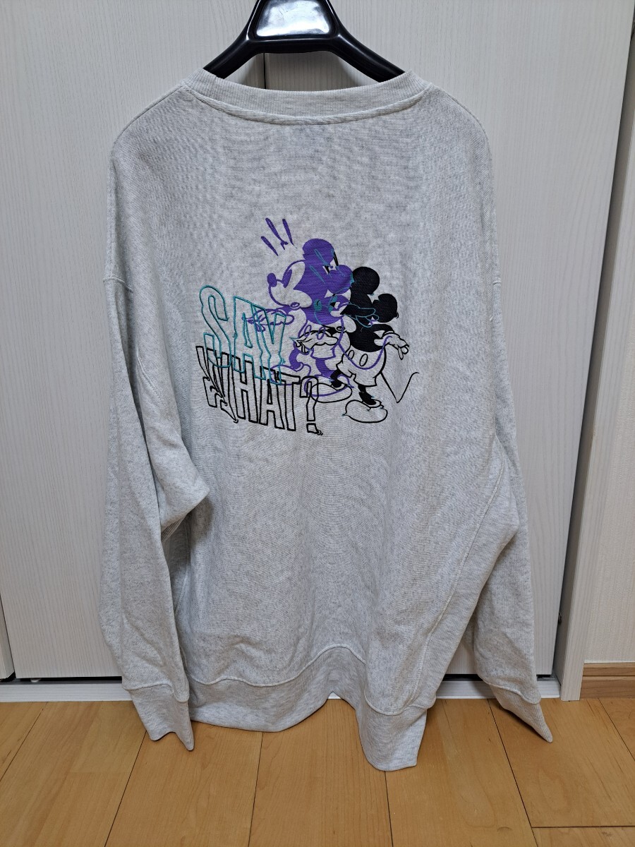 ミッキーがバックプリントされた、クルーネックのスウエットです。