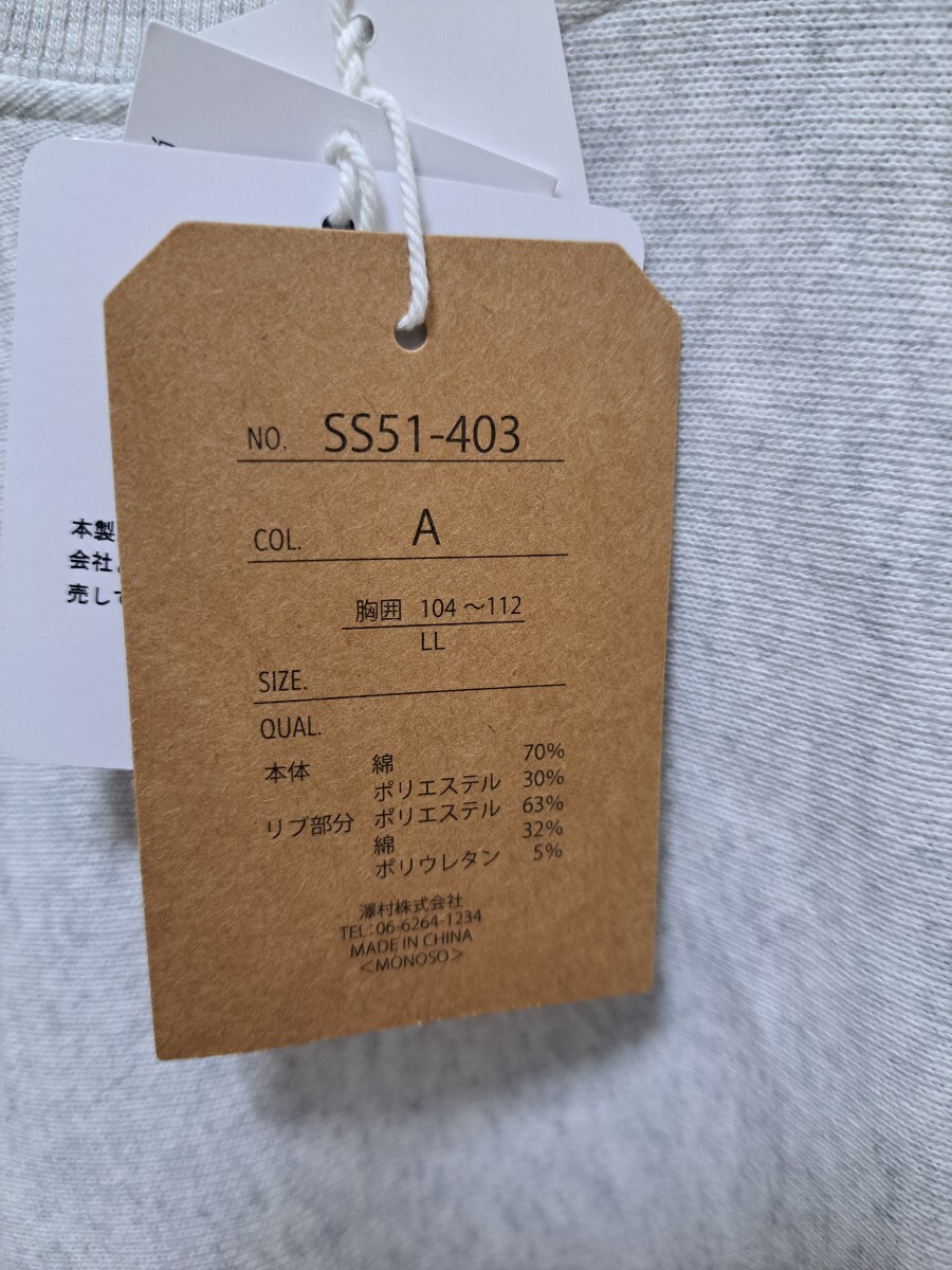 胸囲124cm、袖丈55cm、肩幅62cm、着丈70cm、チェスト104~112cm