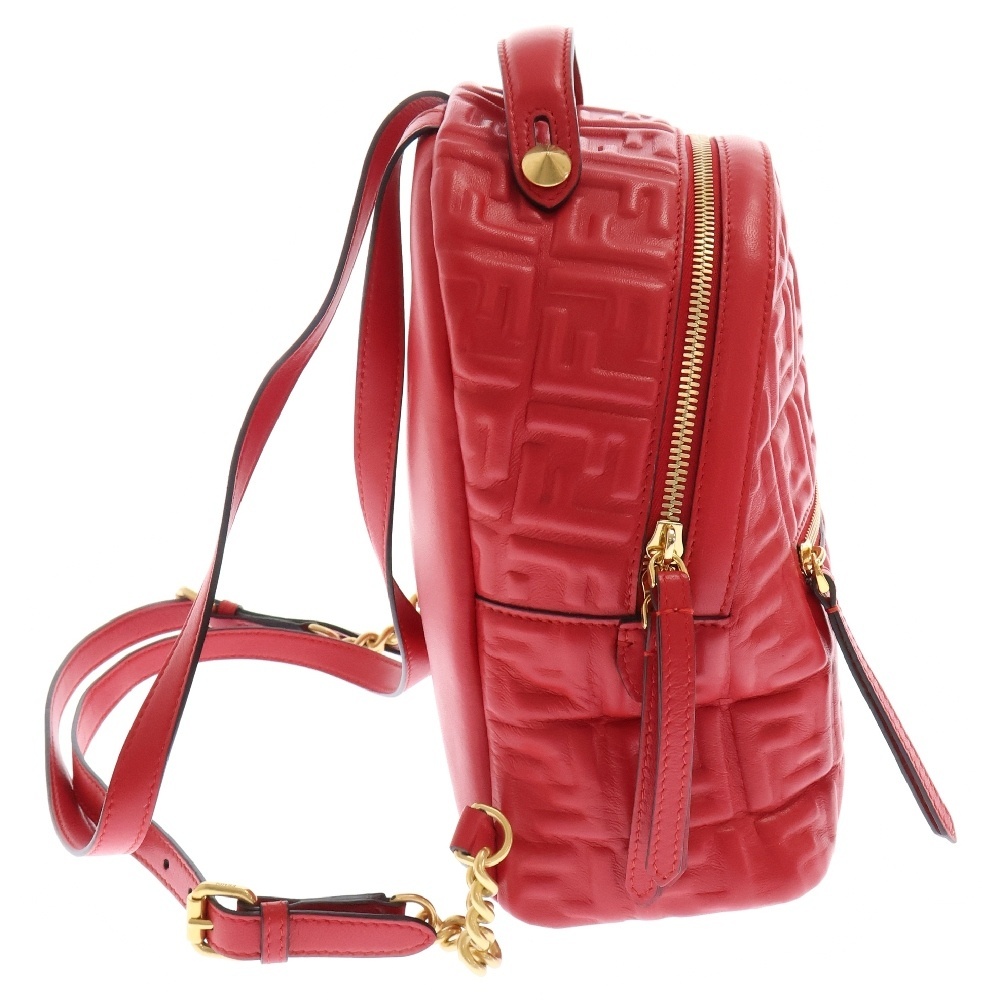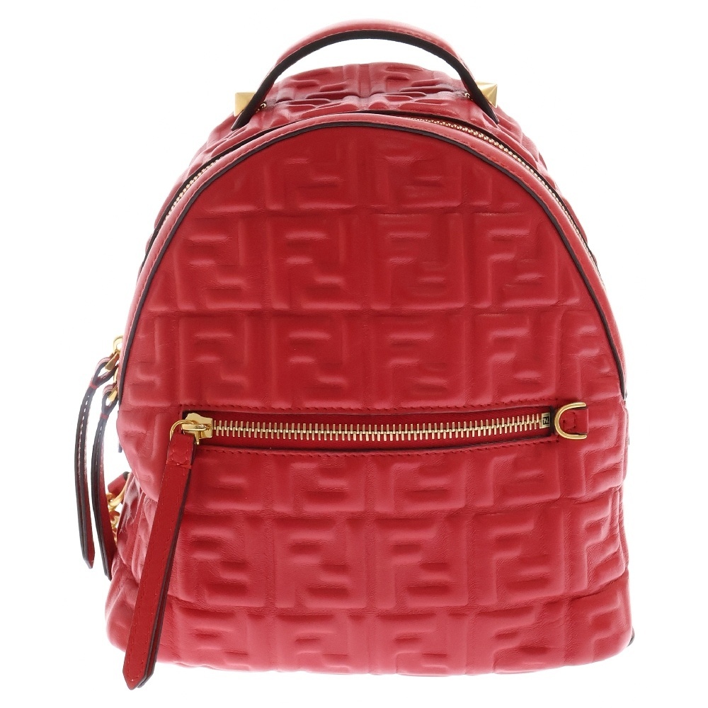 FENDI フェンディ FF ズッカ柄 レザーバッグパック リュック レッド 8BZ038