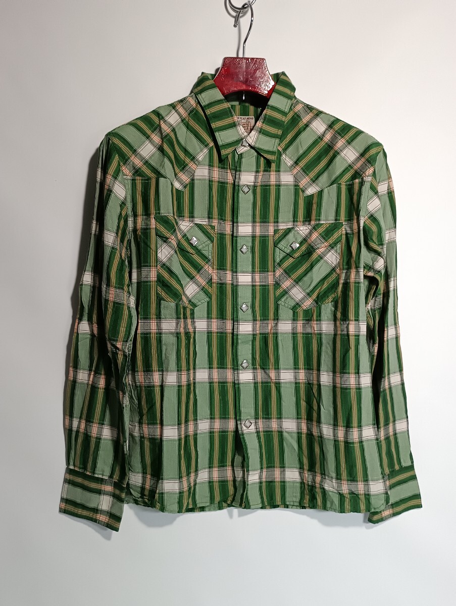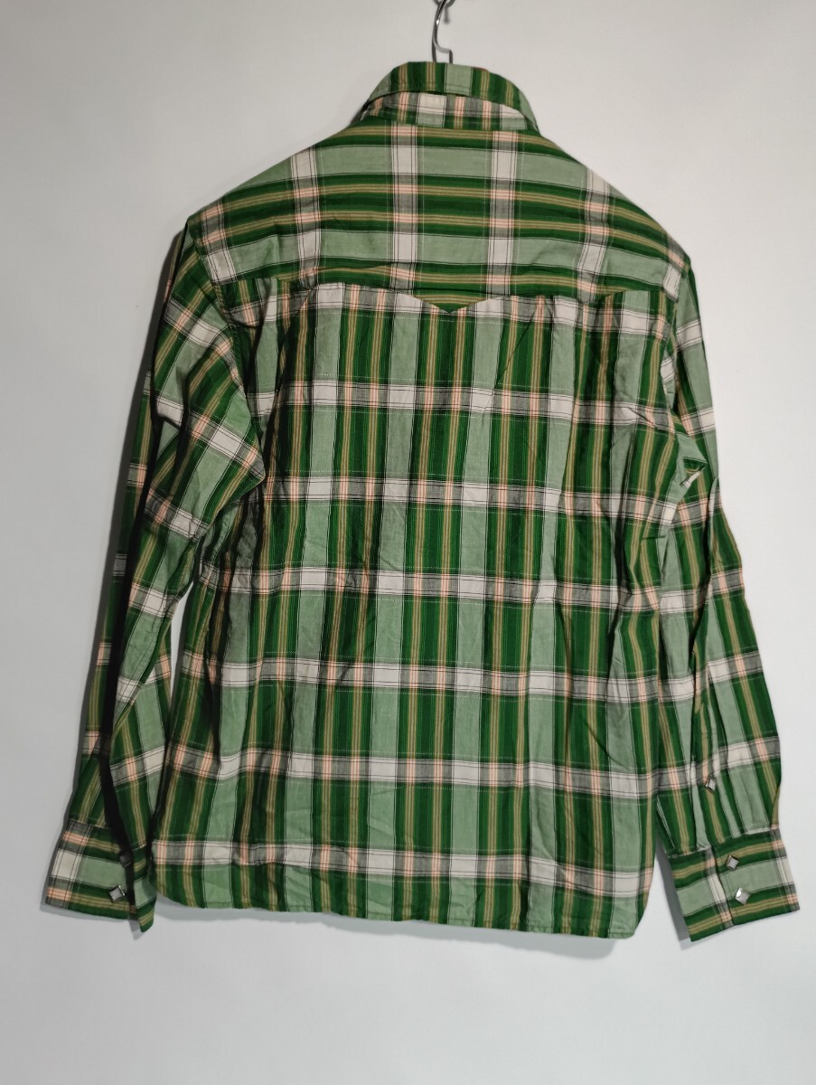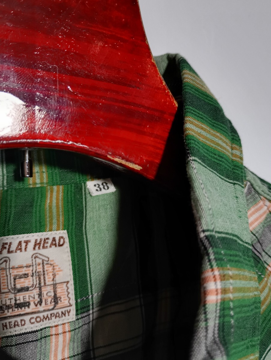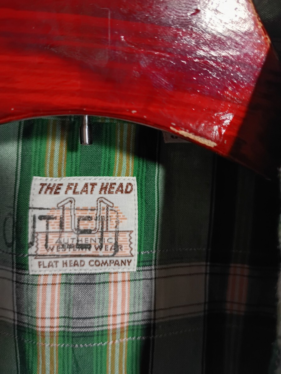 THE FLAT HEAD フラットヘッド 日本製 緑 チェック柄 長袖 マチ付き ウエスタンシャツ 38 M程 グリーン