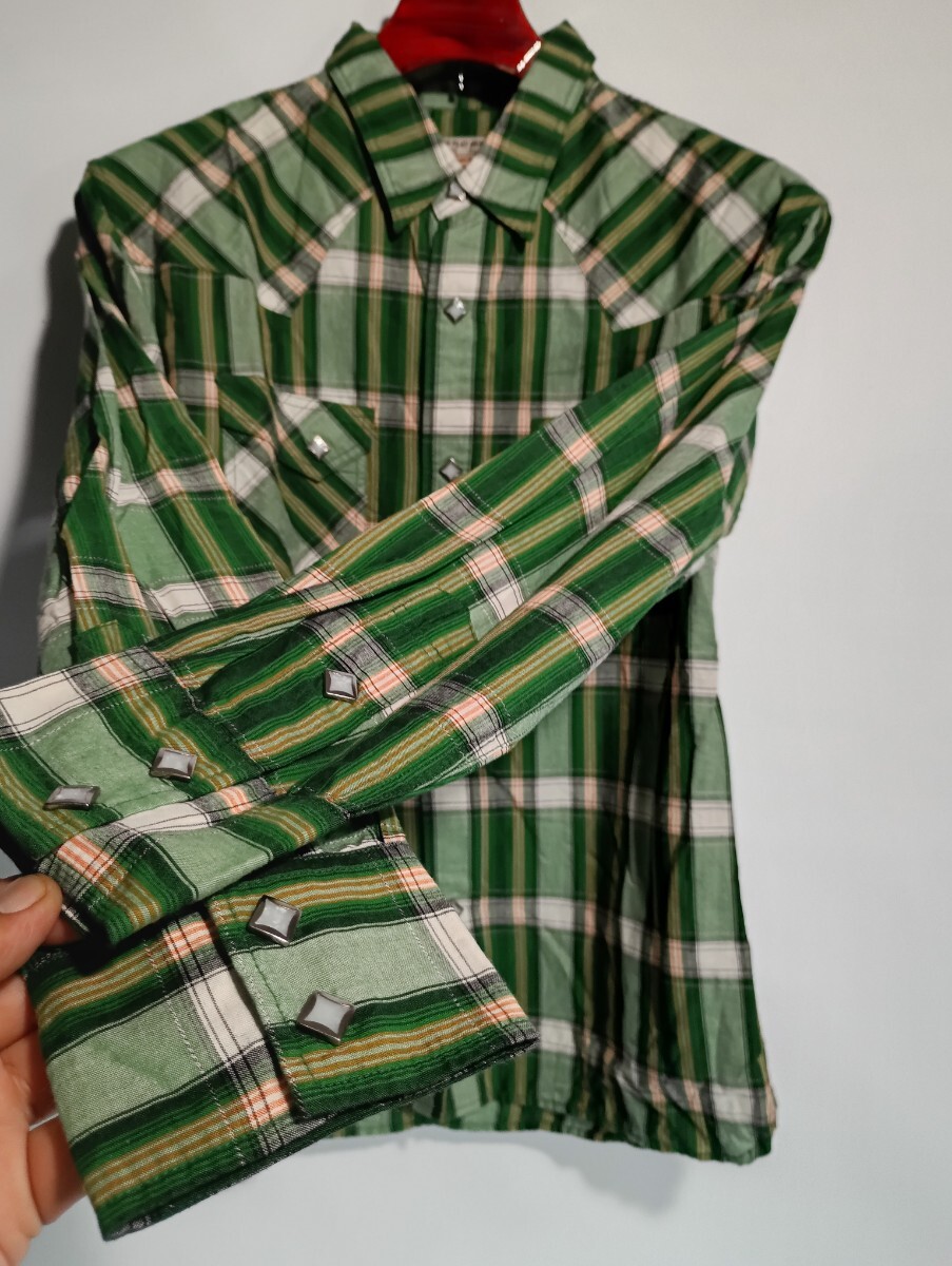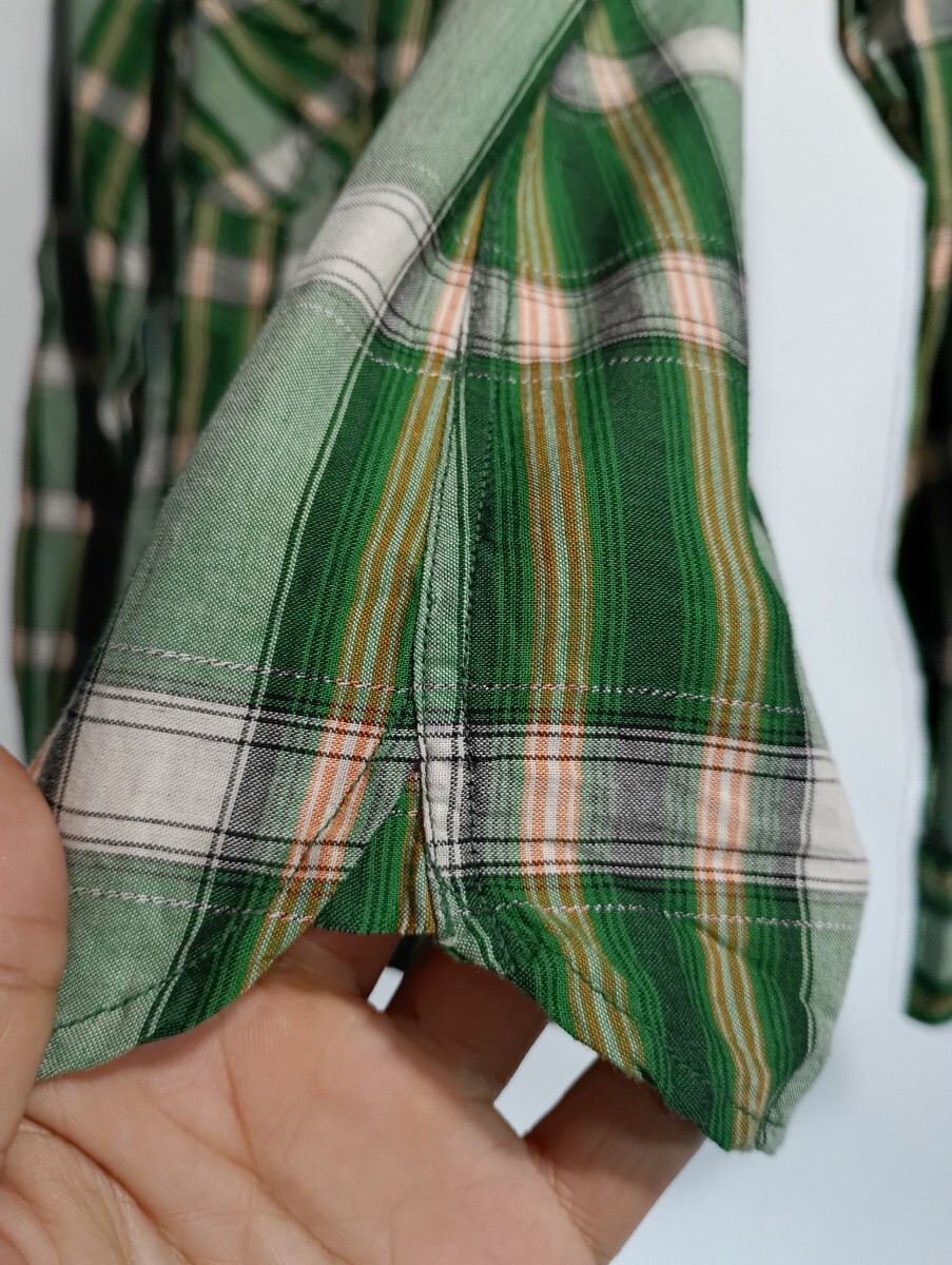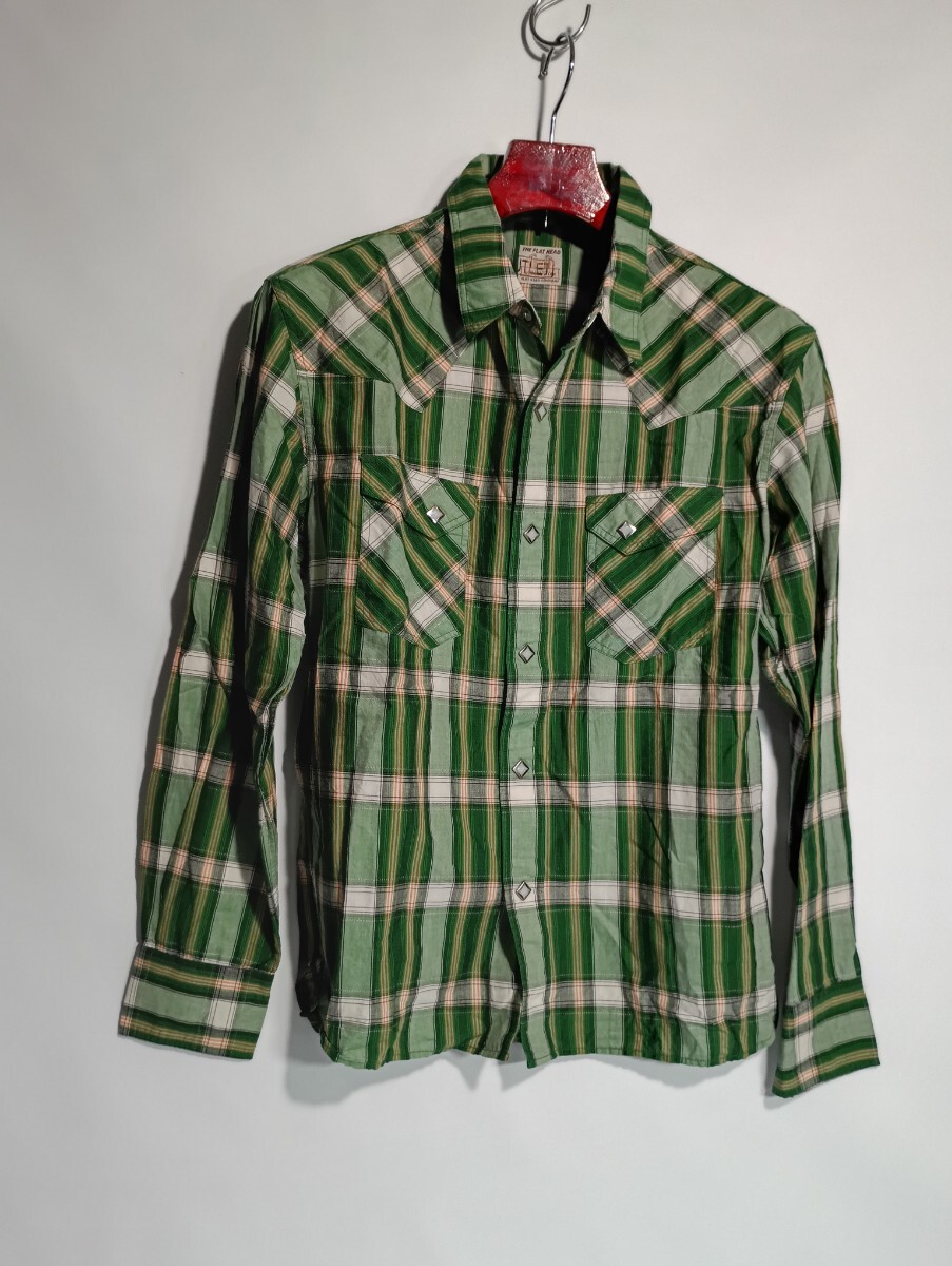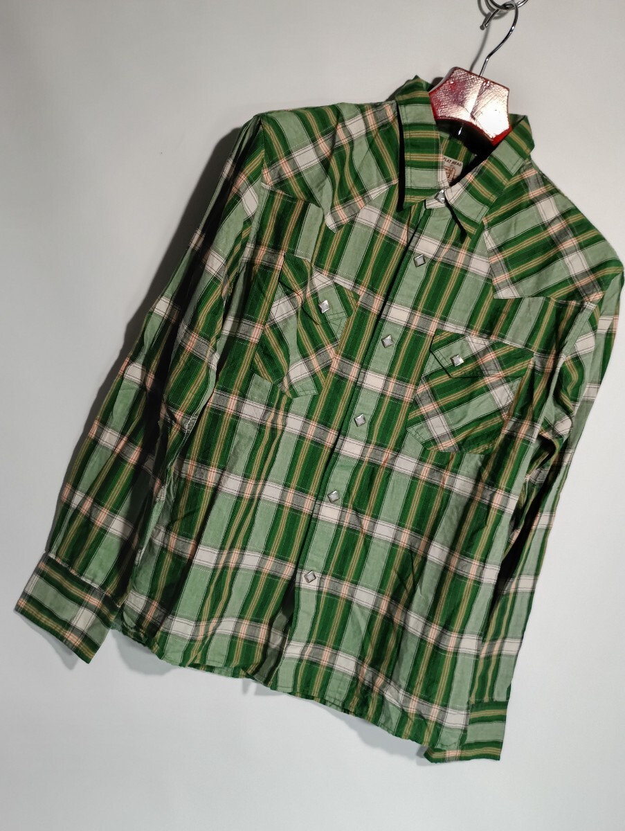 THE FLAT HEAD フラットヘッド 日本製 緑 チェック柄 長袖 マチ付き ウエスタンシャツ 38 M程 グリーン