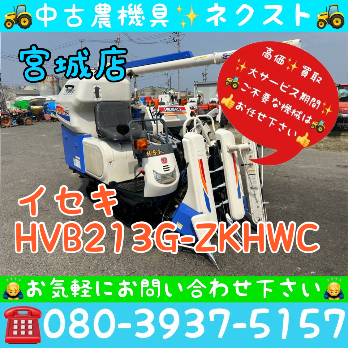 イセキ HVB213G-ZKHWC グレンタンク 2条 コンバイン 宮城発 | |