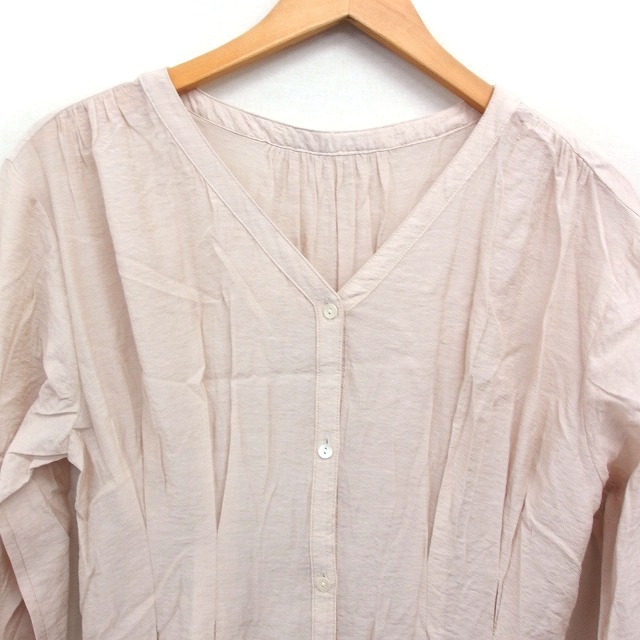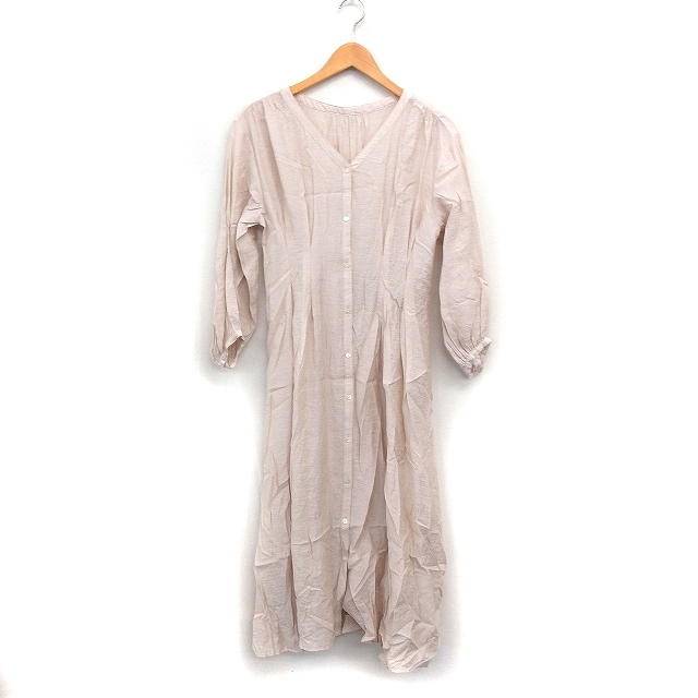 スローブ イエナ SLOBE IENA シャツ フレア ワンピース 7分袖 ロング丈 無地 ピンクベージュ /FT17 レディース