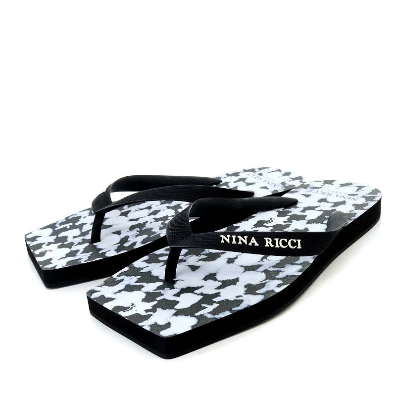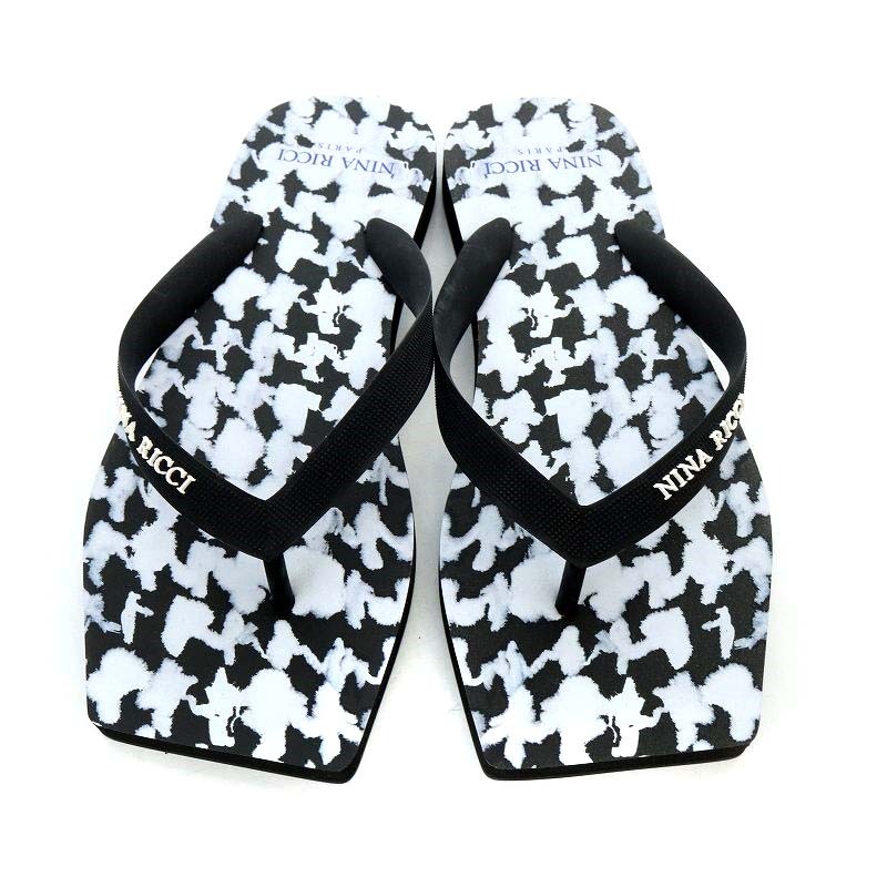 ニナリッチ NINA RICCI ビーチサンダル トング フラット スクエアトゥ 37 24cm 黒 ブラック /YO24 ■PN レディース