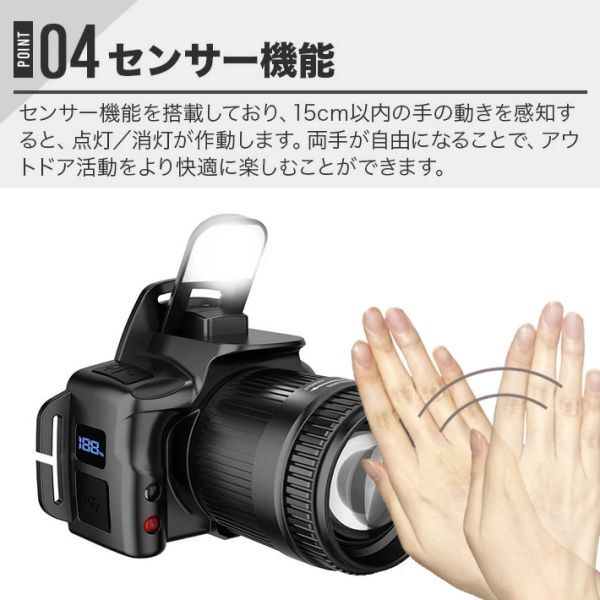 進化版 ズーム式 XPG LED ヘッドライト 6モード調光 充電式ヘッドランプ 電池インジケーター センサー機能 COB SOS機能 800ルーメン