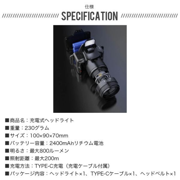 商品名:充電式ヘッドライト