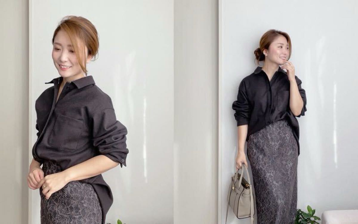 ハリがある生地でシャツのようにさらっと着るだけで立体感もあり、体型カバーしつつキレイめに着こなせます。
