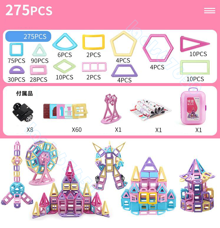 275PCSセット 知育玩具 マグネットブロック 磁石ブロック 立体パズル マカロン色 幼児 保育園 小学生 贈り物 子供プレゼント/ギフト
