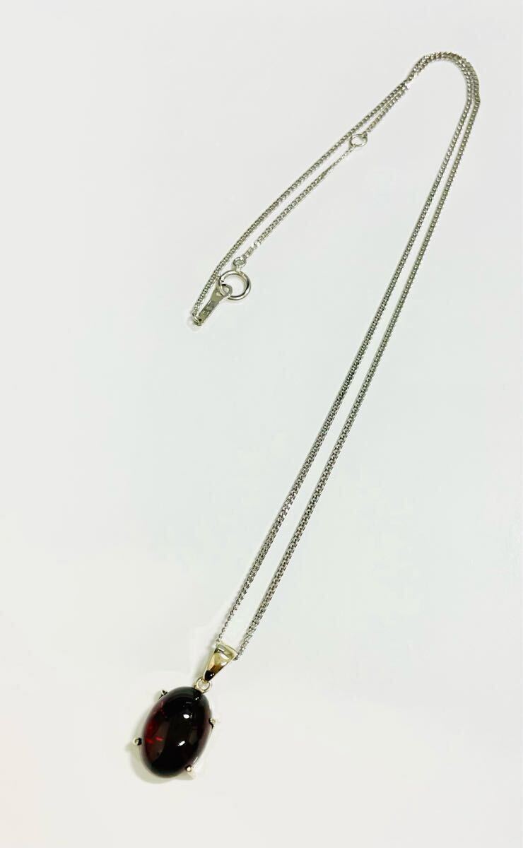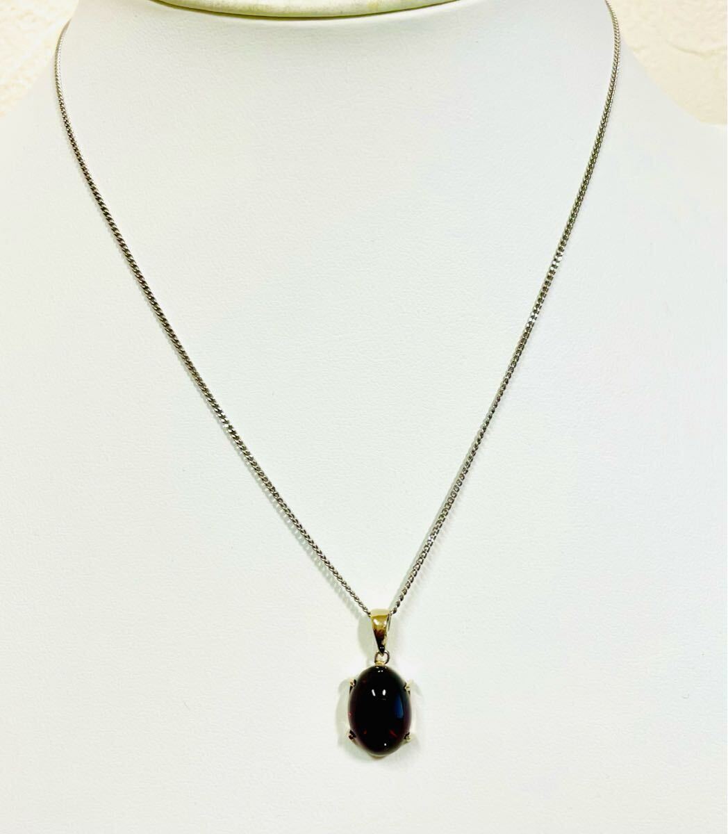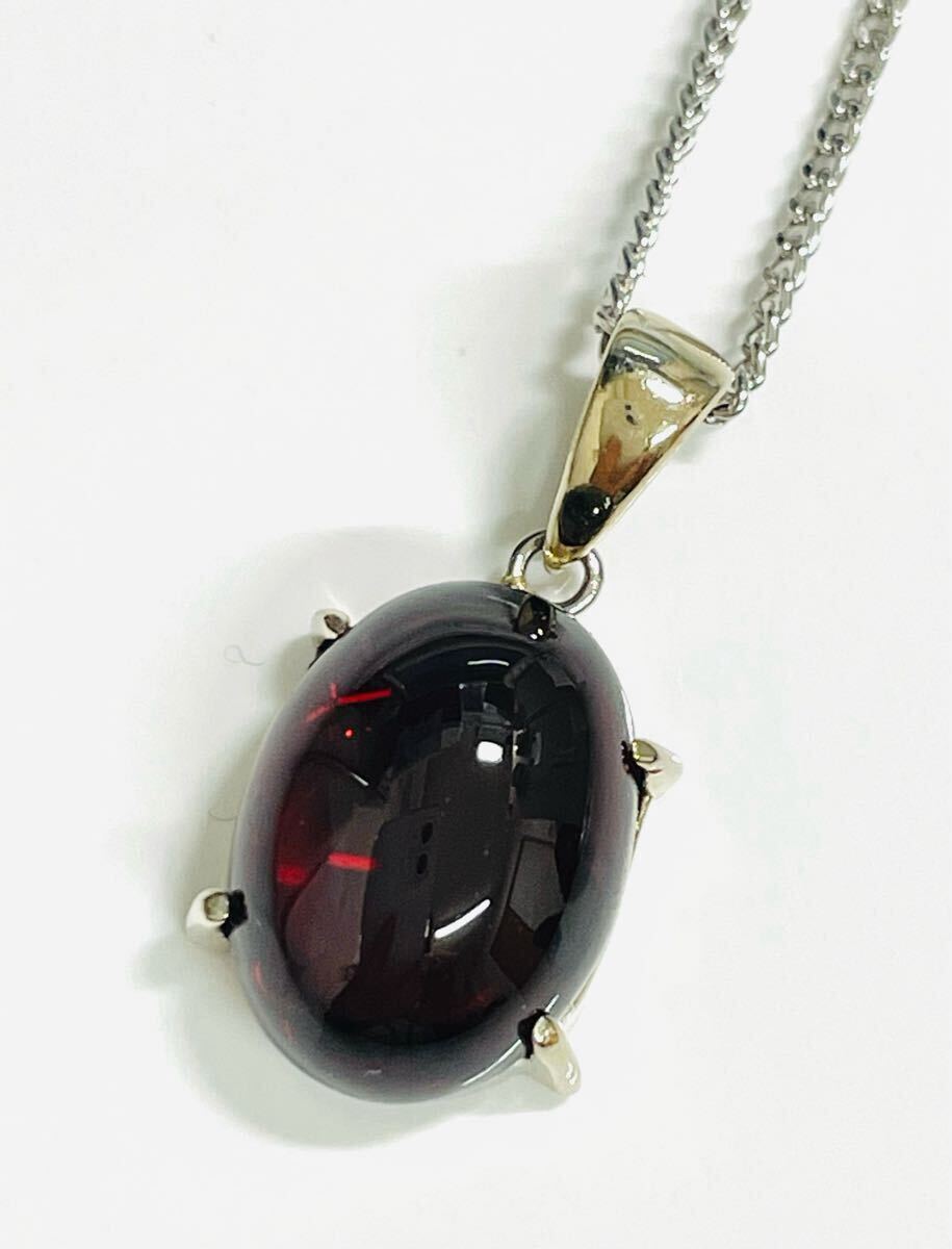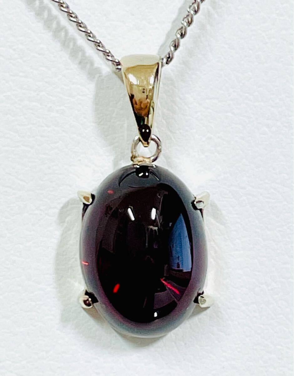 こちらは、Pt850喜平柄チェーンにK14WG台にガーネット1石付きペンダントネックレスです。