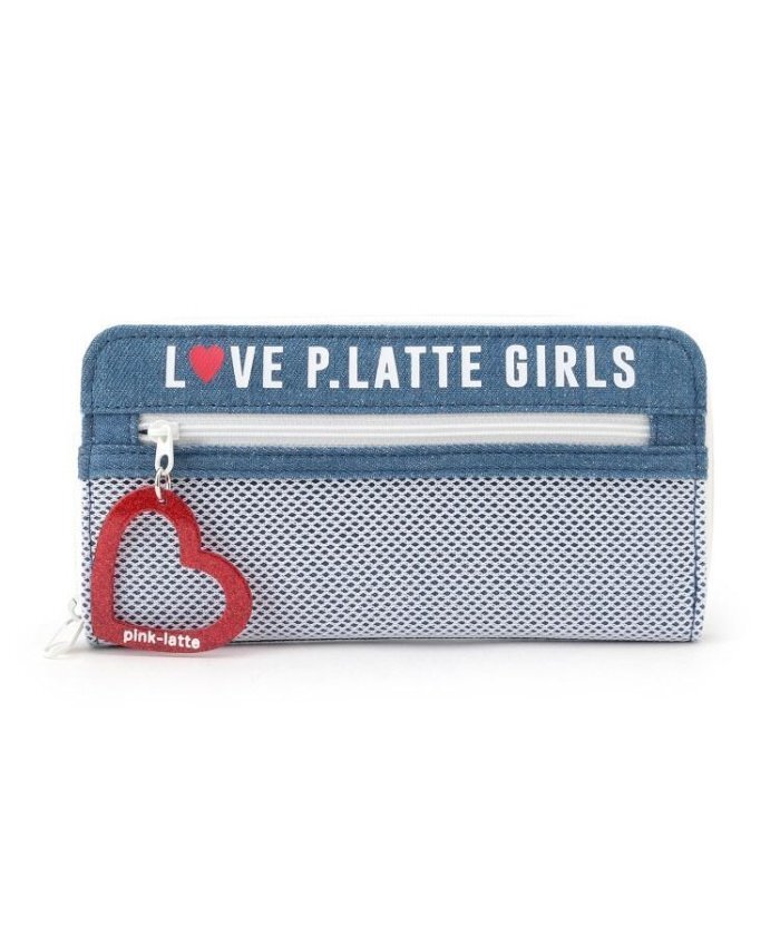 新品 PINK-latte   ロゴメッシュフェイクレザー長財布  ブルー(492) 定価3520円