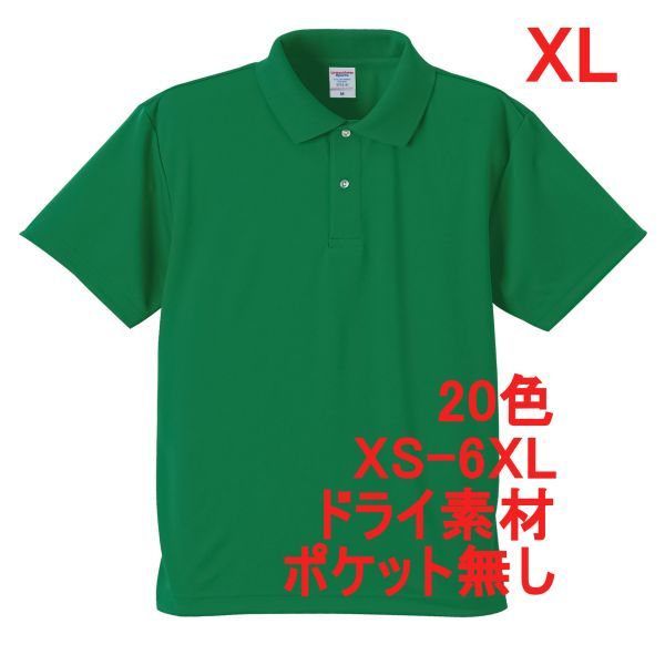 ポロシャツ XL グリーン ドライ素材 ベーシック 無地 半袖 ドライ 吸水 速乾 胸ポケット無 A691 2L LL 緑 緑色 591001 5910 5910-01
