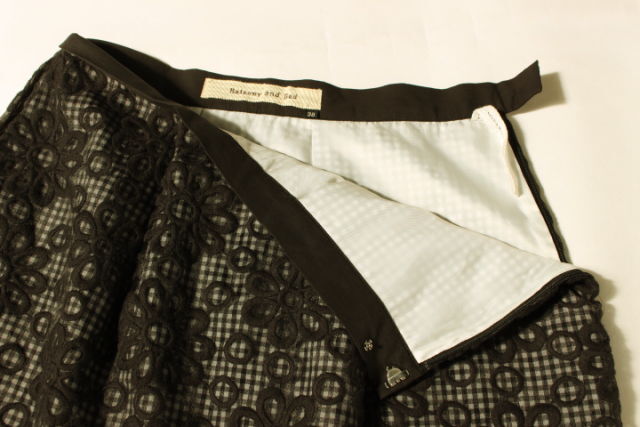 【状態】毛玉・毛羽立ち→所々に毛羽立ちあり。備考→数カ所にシワあり。香水のようなにおいあり。ウエストにヨレあり。