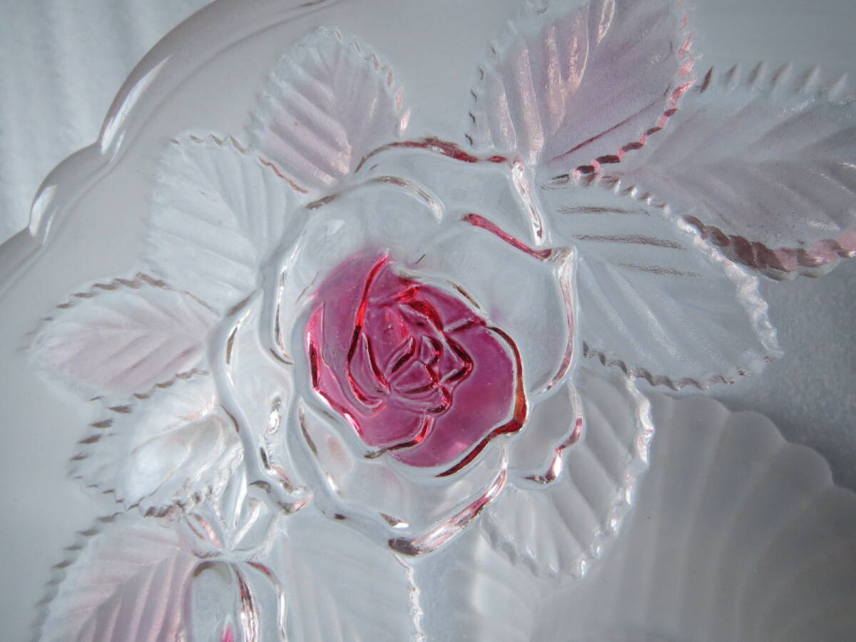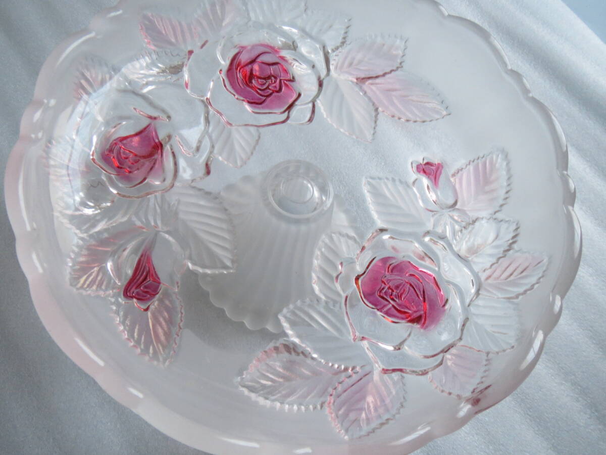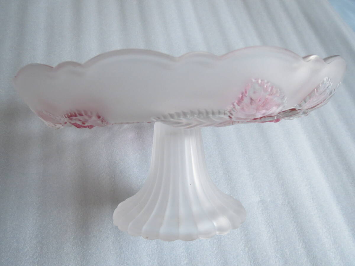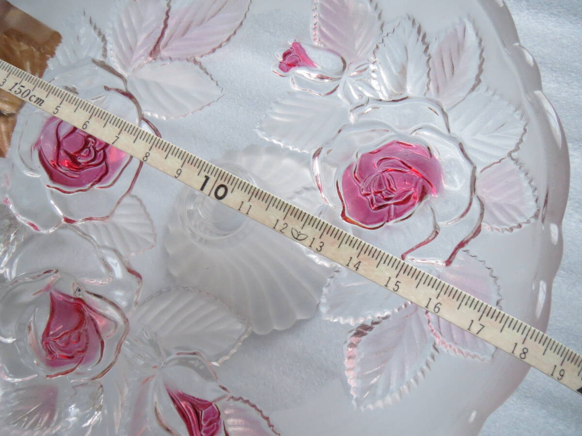 スイーツ乗せ◇ガラスコンポート◇バラレリーフ◇未使用◇年内出品12月15日まで
