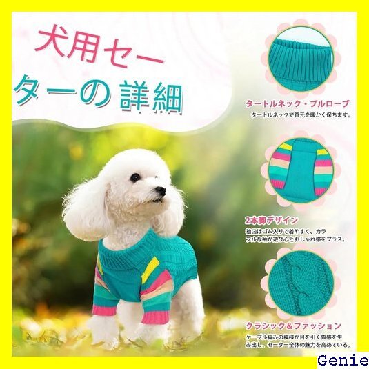 スタイリッシュな犬 服 冬:ニットの模様がいい風合いを醸し出し、犬 クリスマス 服全体の魅力を高めています。また、脚のカラフルなストライプ柄が遊び心とスタイリッシュな要素をプラスし、どんなパーティーでも愛犬を際立たせます。グリーンとピンクの犬 服 冬は、普段着にも、パーティーや写真撮影にも最適です。このクラシックカラーの犬 冬服を今すぐ購入して、冬の驚きをもっと楽しみましょう