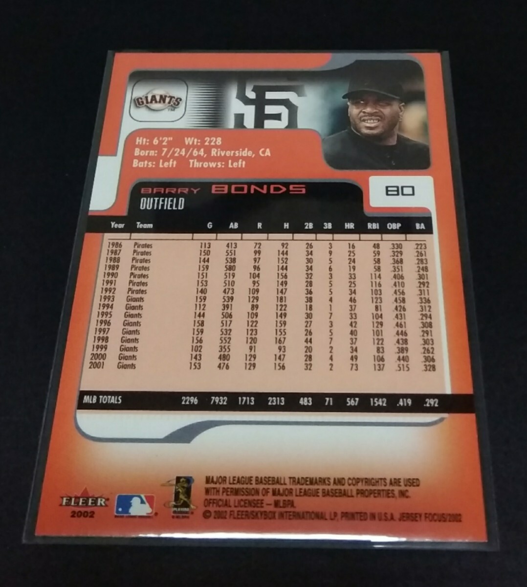 MLB 2002年FLEER Focus バリー・ボンズ(ジャイアンツ) Jersey Edition No,80。 Giants BARRY BONDS
