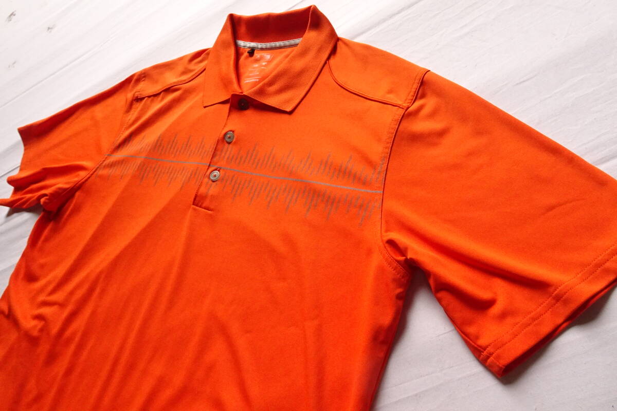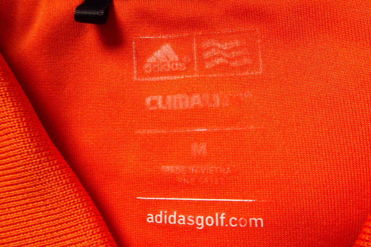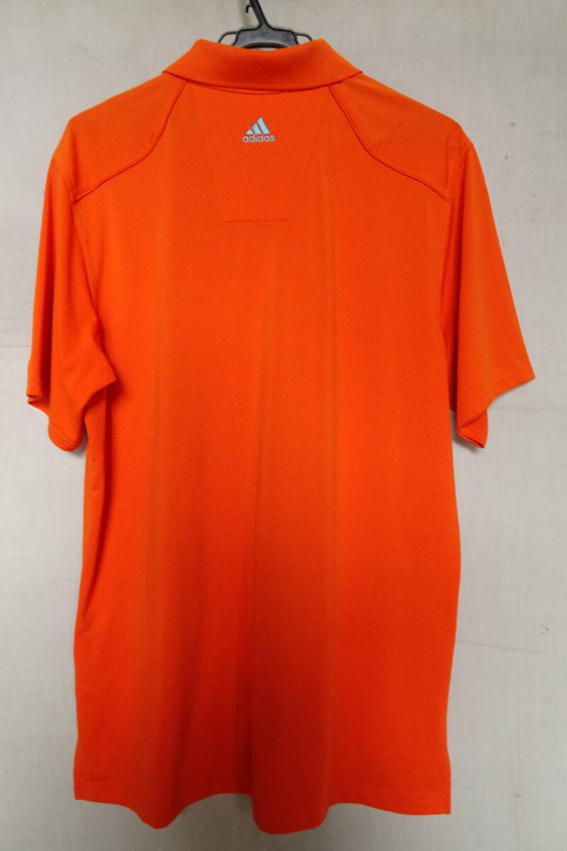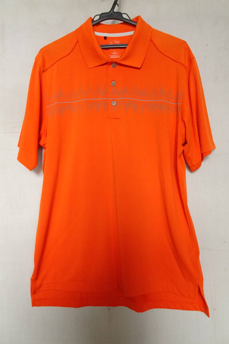 adidas/アディダス/半袖ポロシャツ/ゴルフウェア/速乾性素材/前身頃グラフィック柄プリント/裾サイドスリット/オレンジ/Mサイズ(4/24R7)