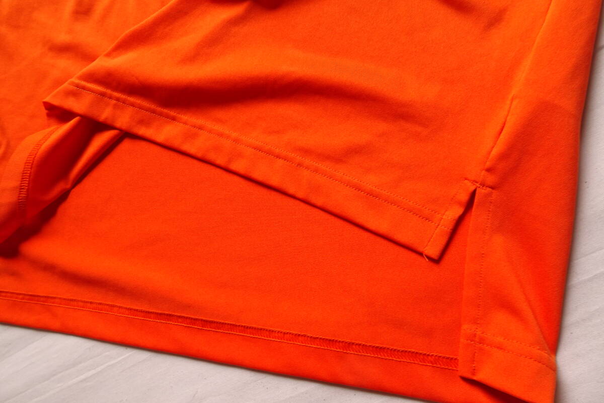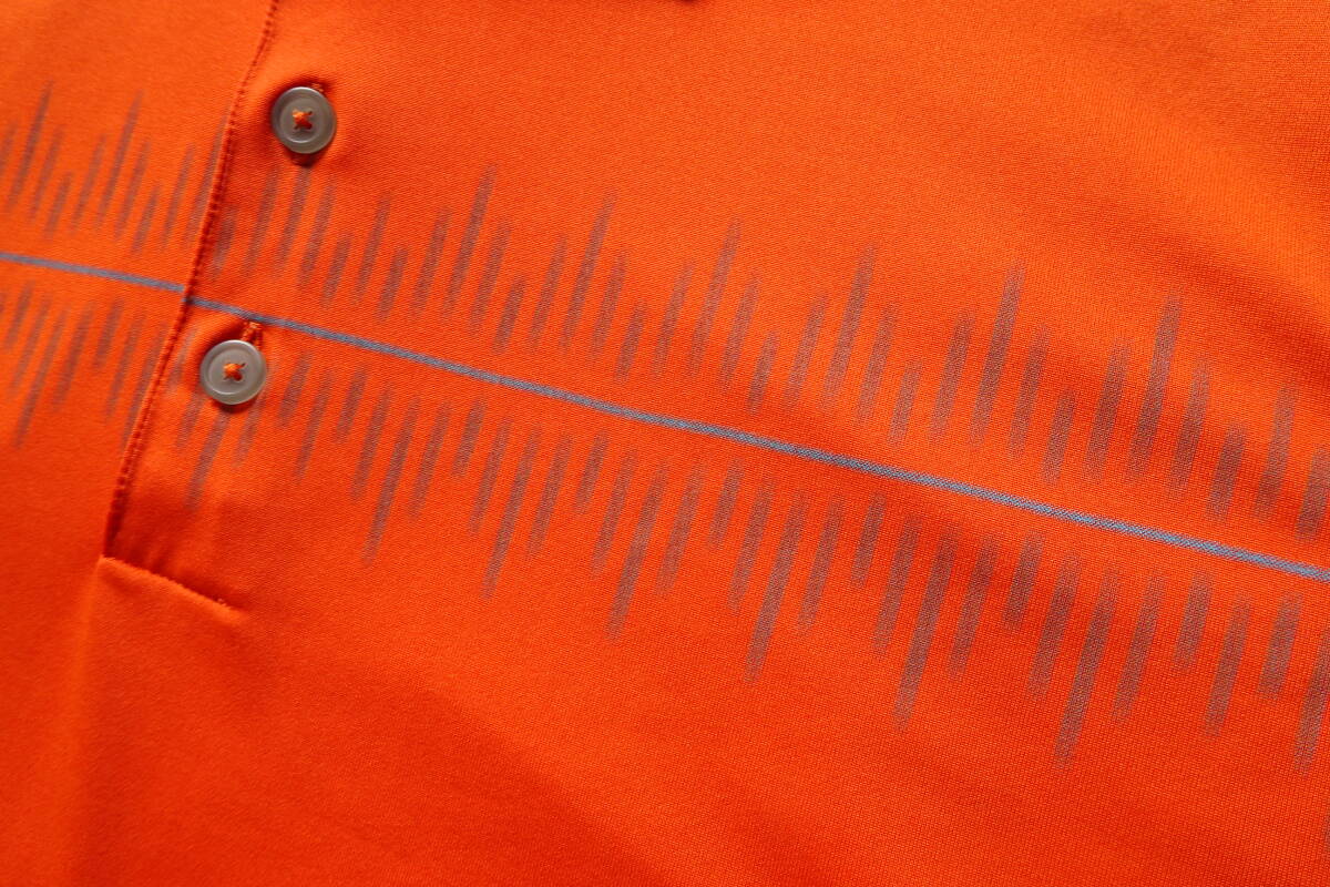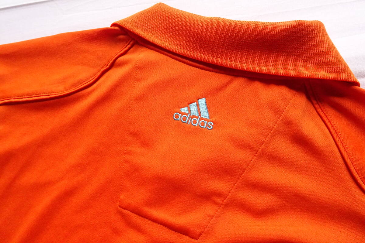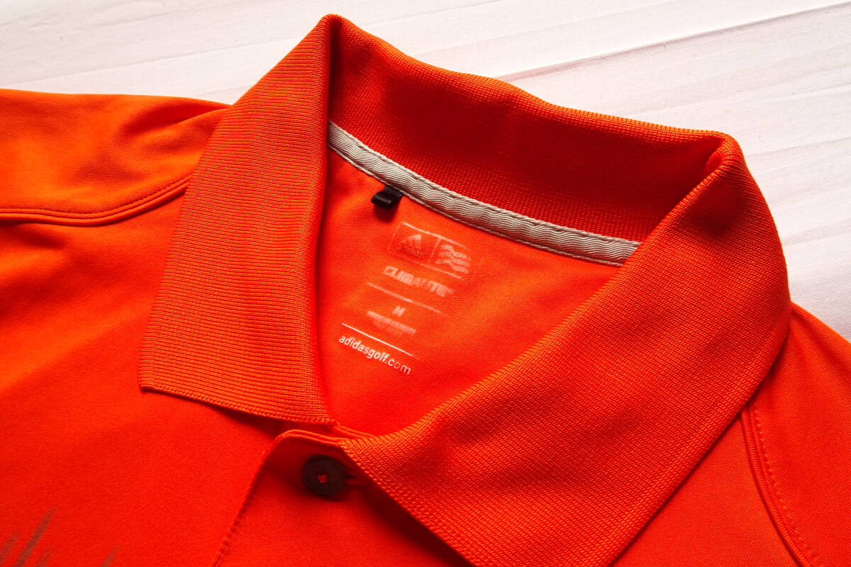 adidas/アディダス/半袖ポロシャツ/ゴルフウェア/速乾性素材/前身頃グラフィック柄プリント/裾サイドスリット/オレンジ/Mサイズ(4/24R7)
