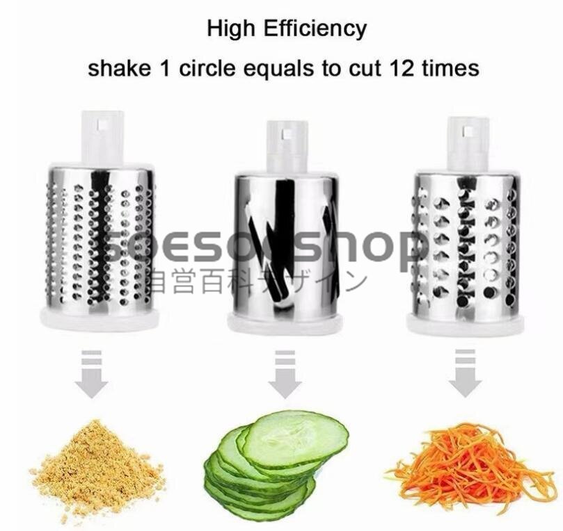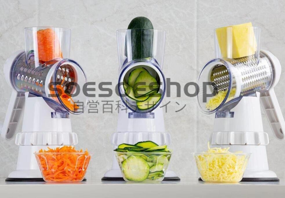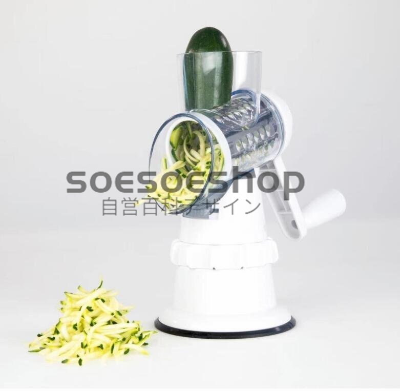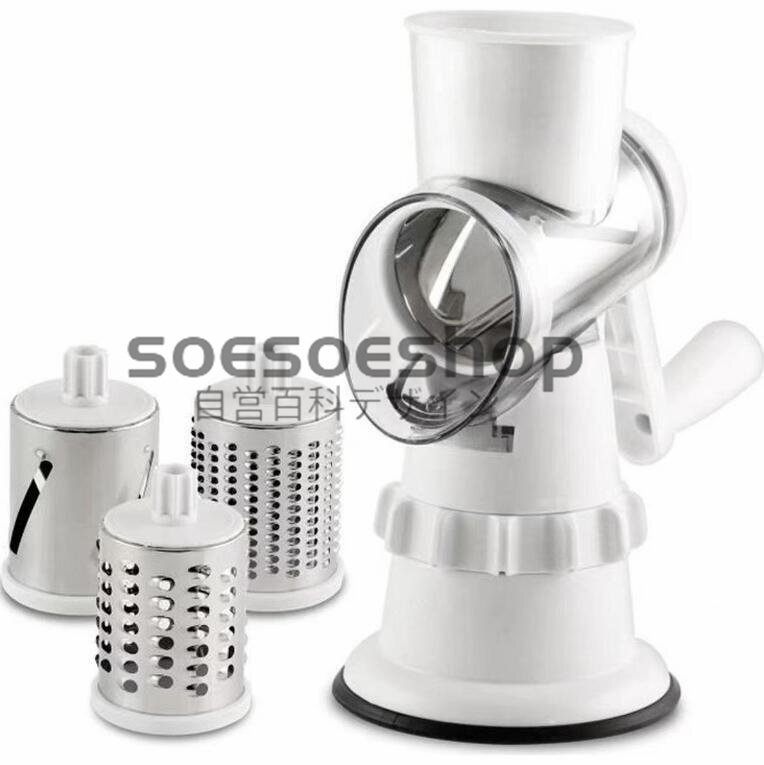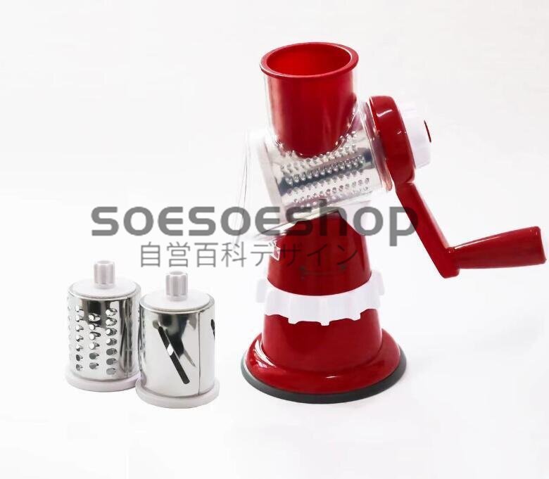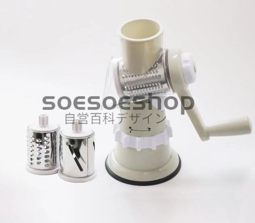 商品詳細 ●ハンドルを回すだけで、楽々カットハンドルをくるくる回すだけで、スライスや細切り、すりおろしが楽々できるマルチスライサー。使い方は簡単、ステンレスドラムを付けてハンドルを回すだけ。3つのドラムを付替えれば、3通りの食材のカットが可能です。●電源