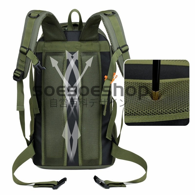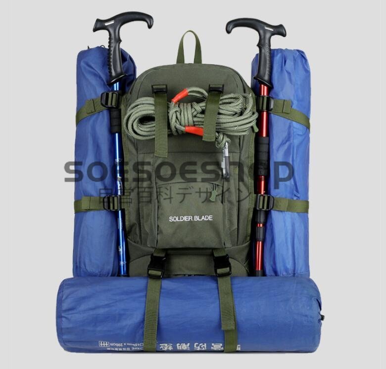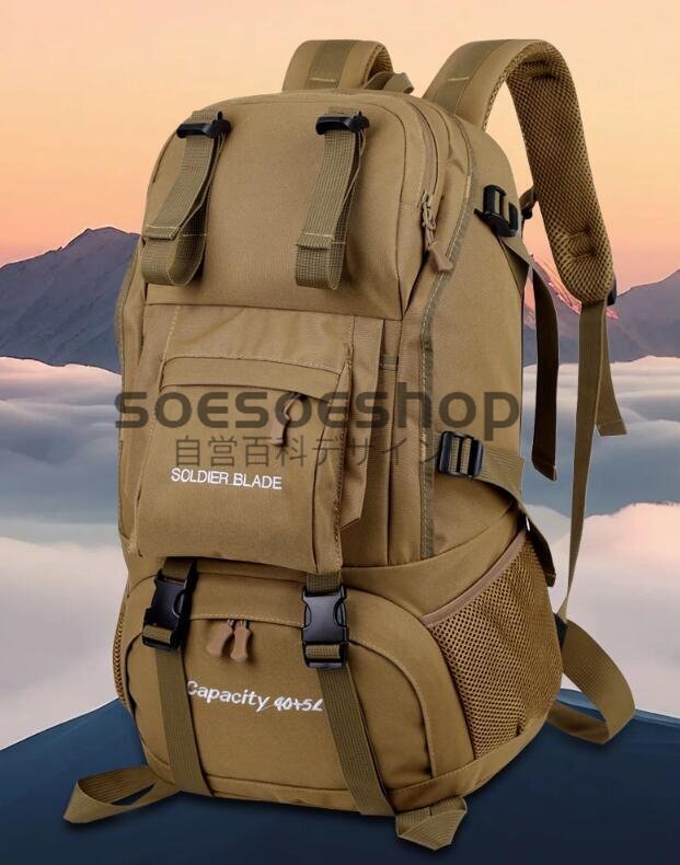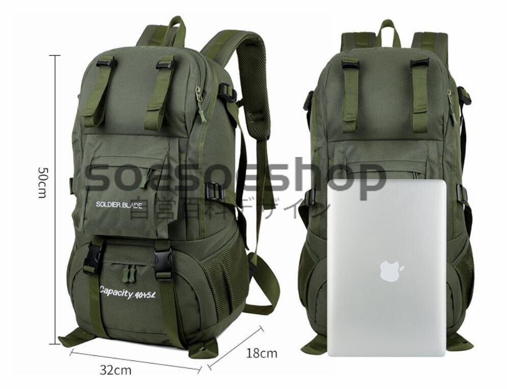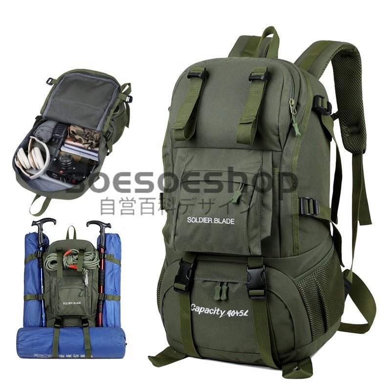 下記は商品詳細です、ご参考ください。【素材】ナイロン、ポリエステル【カラー】グリーン / ブラック / カーキ【サイズ】 約32* 50*18cm【重さ】約0.9kg【容量】55L通気性、防水性、抗菌性アウトドアに最適な55L防撥水登山リュックです。背中に当たる部分は通気性に優れたメ