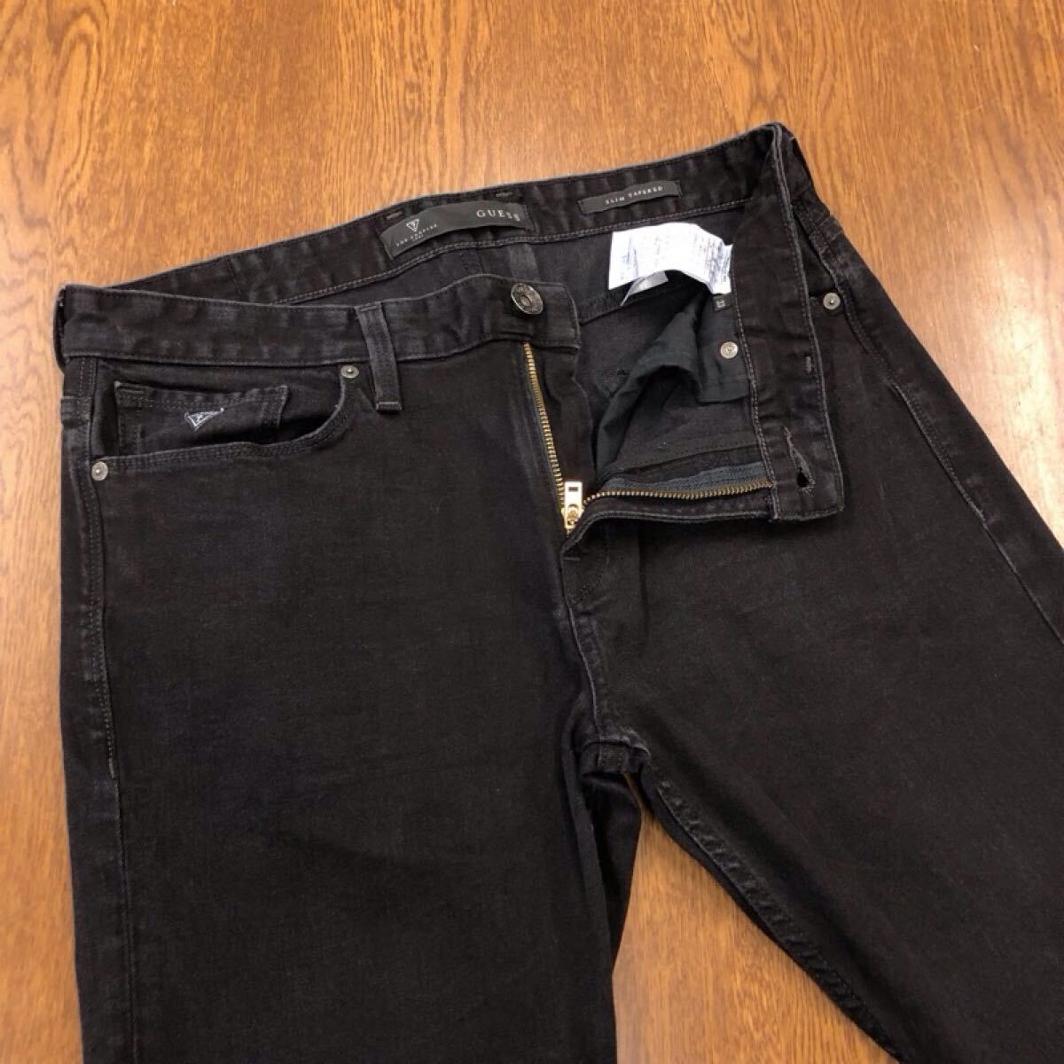 【GD376】GUESS W33 カラーパンツ ブラック 黒色 ストレッチ生地 メンズブランド古着 ゲス 送料無料