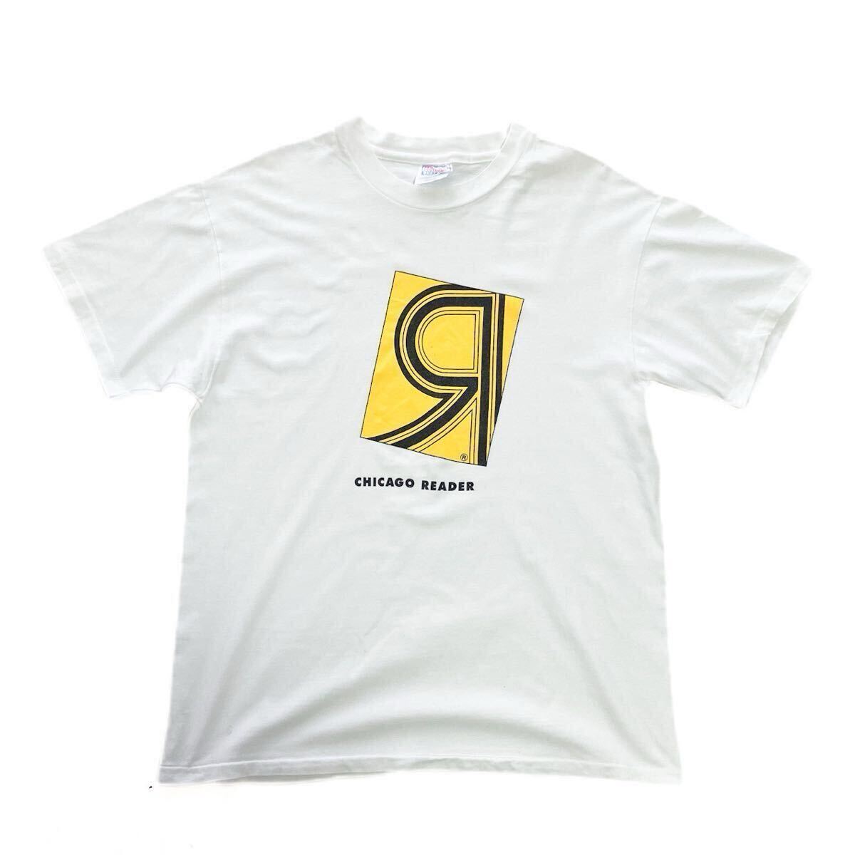90s USA製 Hanes BEEFY-T CHICAGO READER プリントTシャツ 半袖 Tシャツ コットン100 白 L