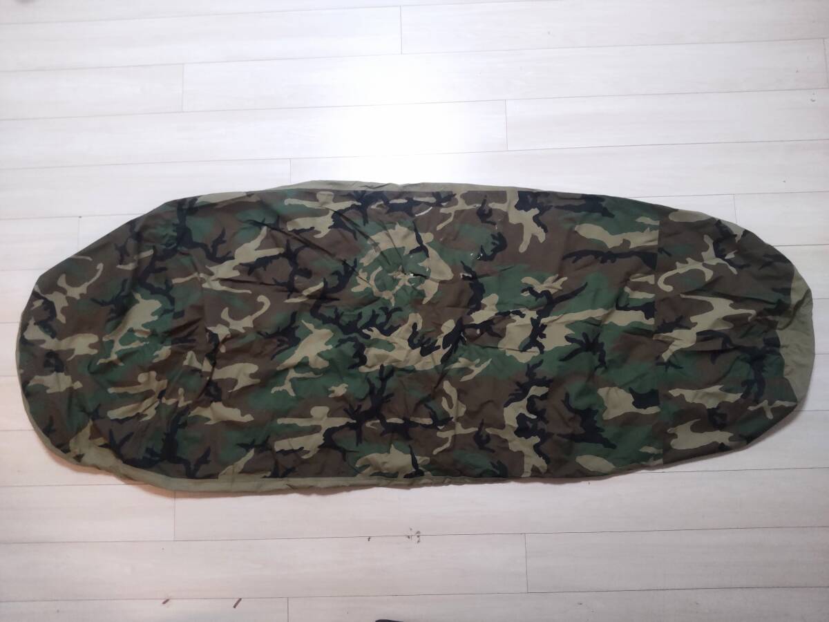 TENNIER INDUSTRIES社製のシュラフ(寝袋)カバーです ■TENNIER INDUSTRIES社は米軍へハイクオリティの軍関連の商品を供給しているブランドです ■シュラフを汚れや結露から守るためのものてす ■かなり昔のオールドモデルになります ■サイズは 素人採寸ですが(写真1枚目の平置きの状態で)縦210cm 横(一番広い箇所で)83cm ありました ■素材にはGORE-TEXを使用しております ただ昔のものですので機能が落ちている可能性があります ■カモフラージュ柄のデザインとなっております ■サイドはスナップボタンが付いております ただ理由は分かりませんがボタン一つ飛ばしで留められるデザインです(写真6枚目をご参照下さい)■主な縫い目にはシームテープ加工がされております ■ユーズドになりますので使用感があります 表面にいくつもの破れや汚れがありますのでよろしくお願いします(一部は写真8.9枚目をご参照下さい)■是非よろしくお願い致します