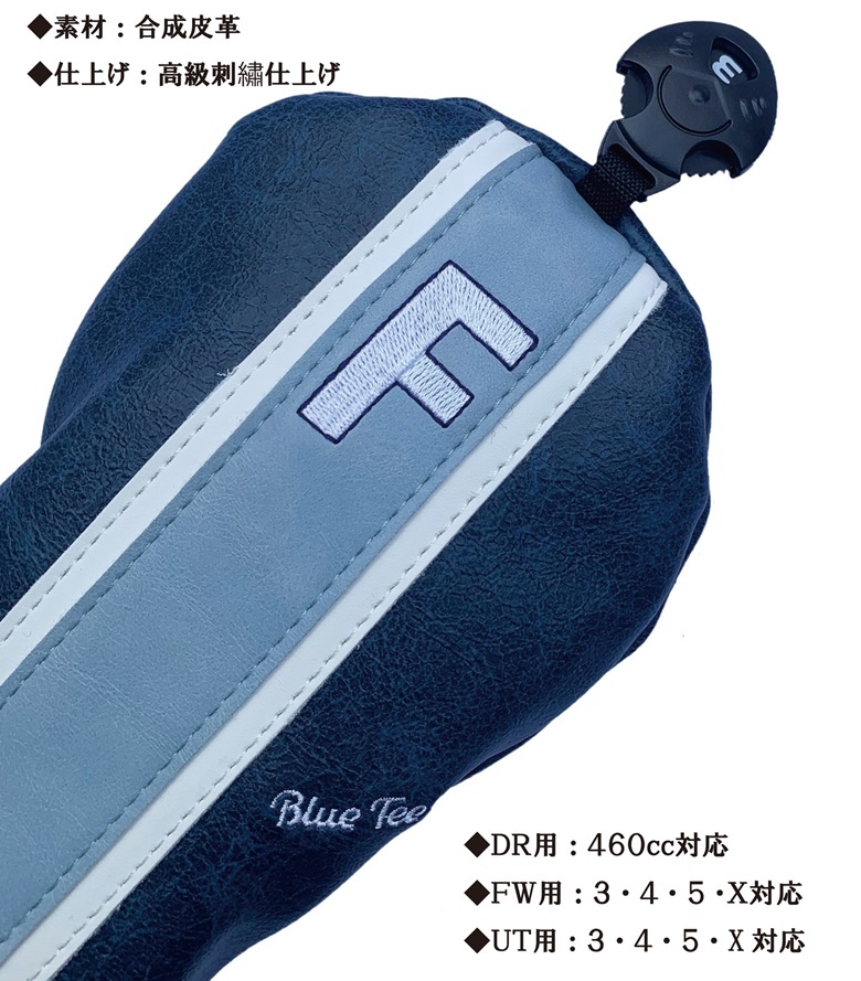 ■2本セット【FW-ネイビ】ブルーティーゴルフ【ワンストライプ - クラシックモデル】フェアウェイ用ヘッドカバー ONE1 送料無料