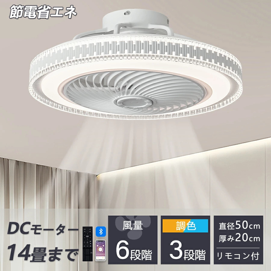 シーリングファン シーリングライト 調光調色 DC おしゃれ ファン付き 軽量 薄型 LED 扇風機 北欧 リモコン スマホ 脱衣所 省エネ 50cm