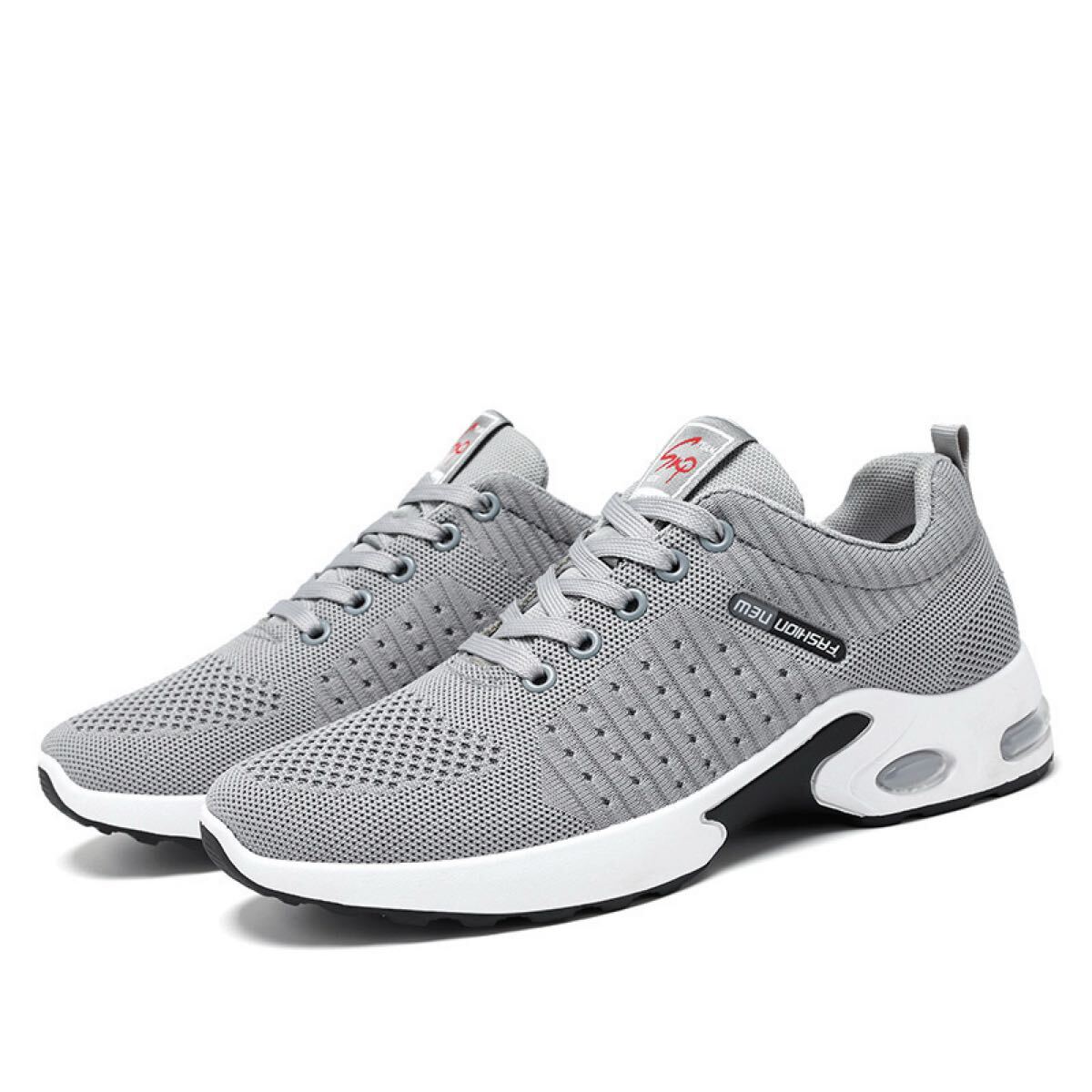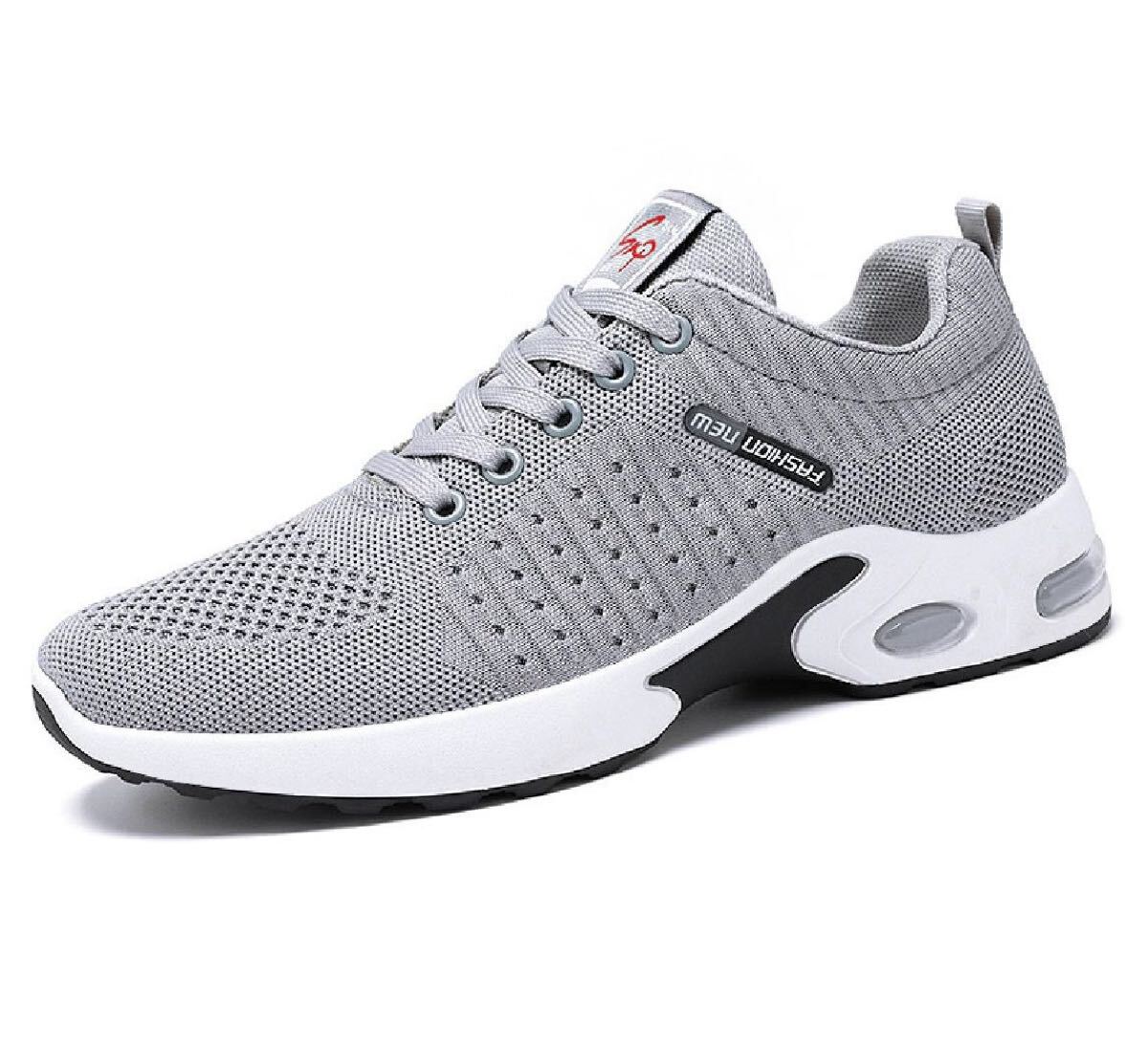 【灰色、24.5cm】メンズ スニーカー スポーツシューズ メッシュ クッション