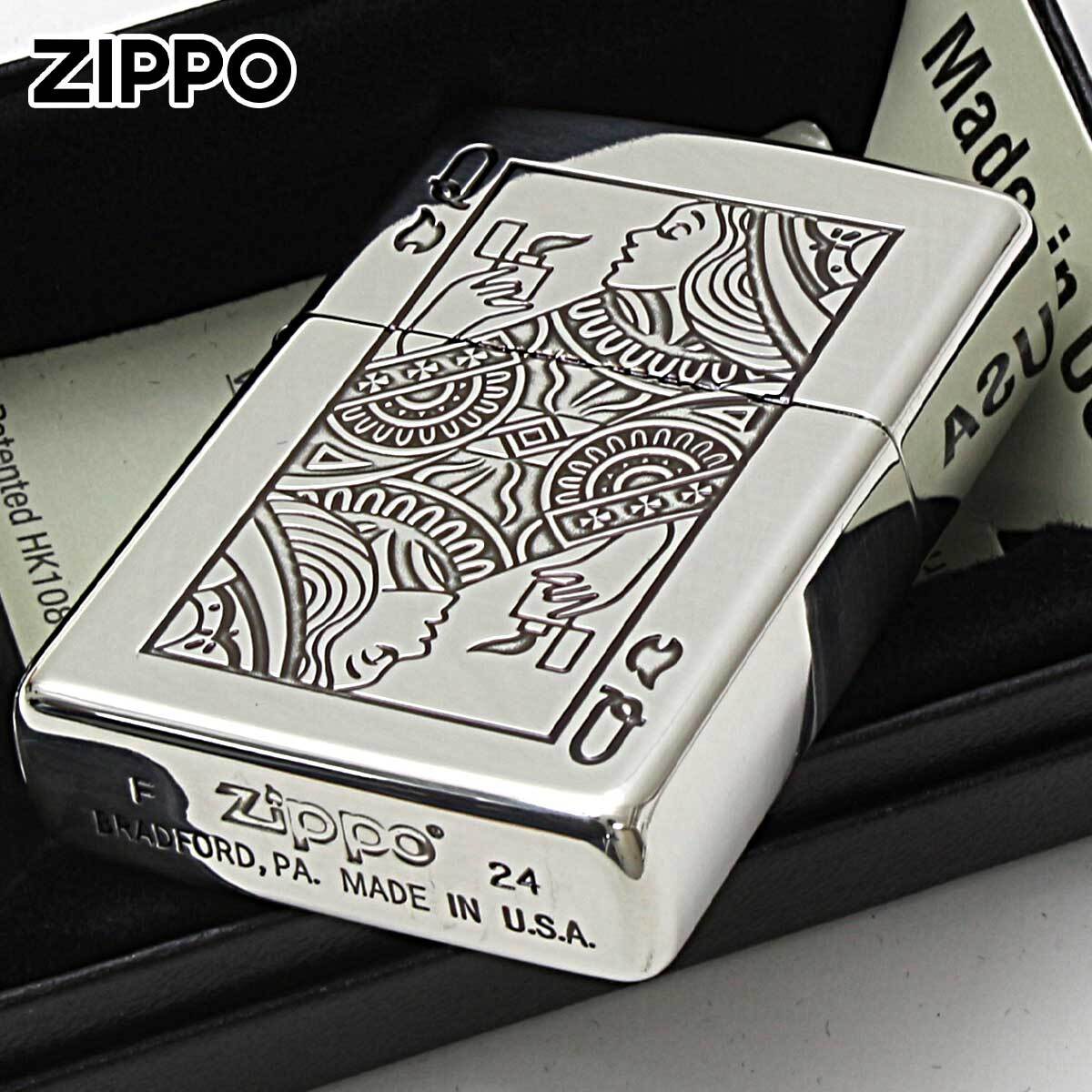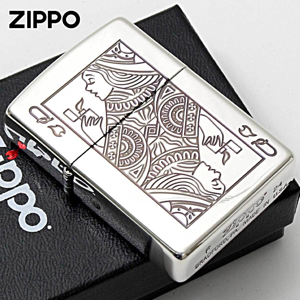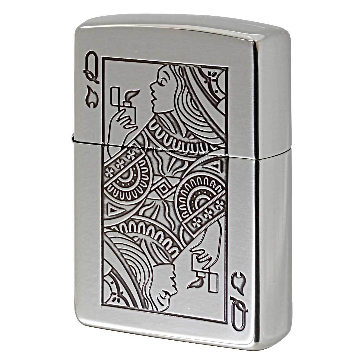 王道のトランプ柄ZIPPO。クイーンは、女王の絵柄が描かれたトランプ。よく見ると、マーク部分がアイコンフレーム、クイーンが持っているのがZIPPOライターとZIPPO仕様のデザインになっております。定番のシリーズ、普段遣いにオススメ!